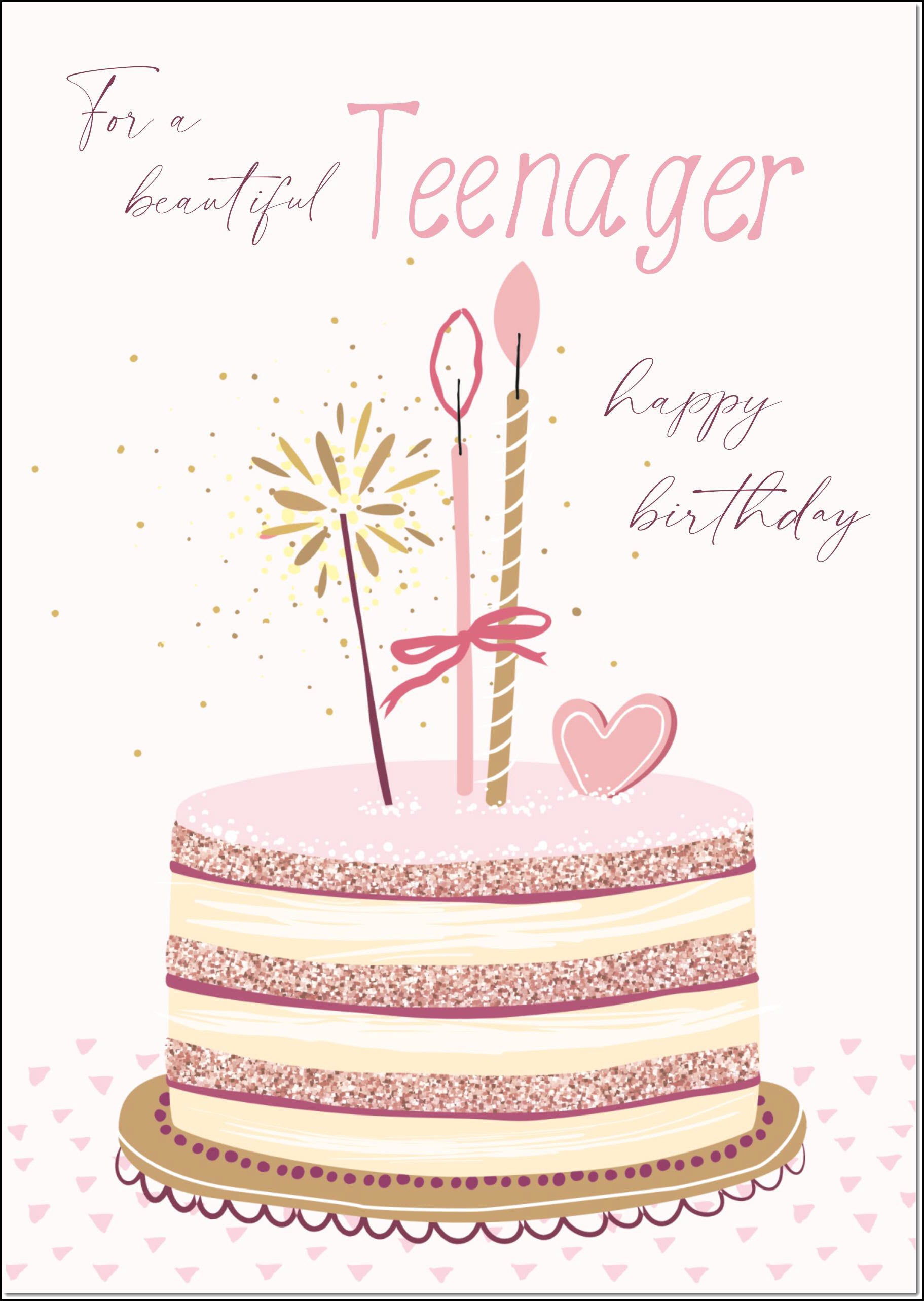 Teenager Birthday Card for Girl Pastel Pink Birthday Cake