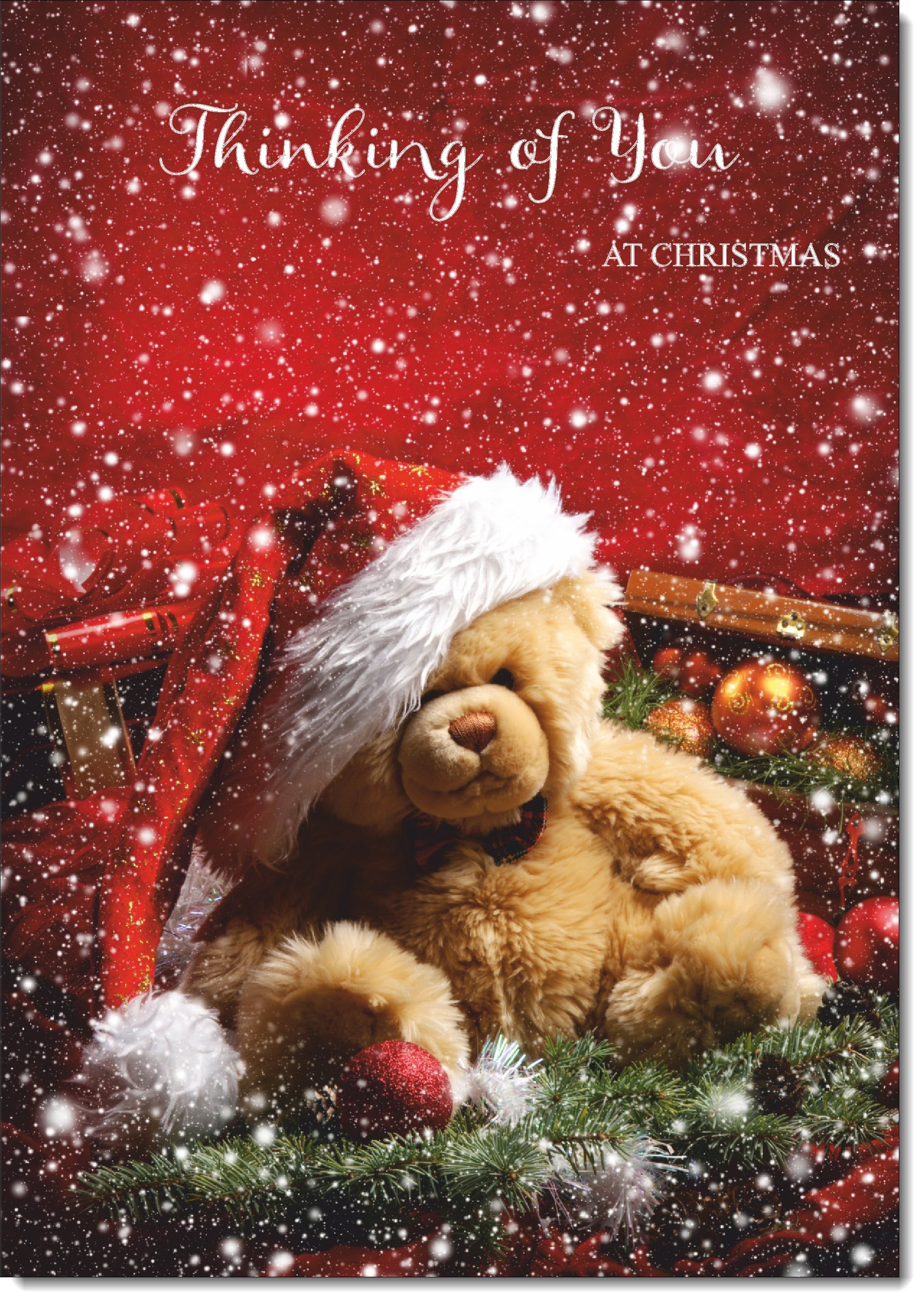 Thinking Of You Christmas Card Teddy Bear in Santa Hat