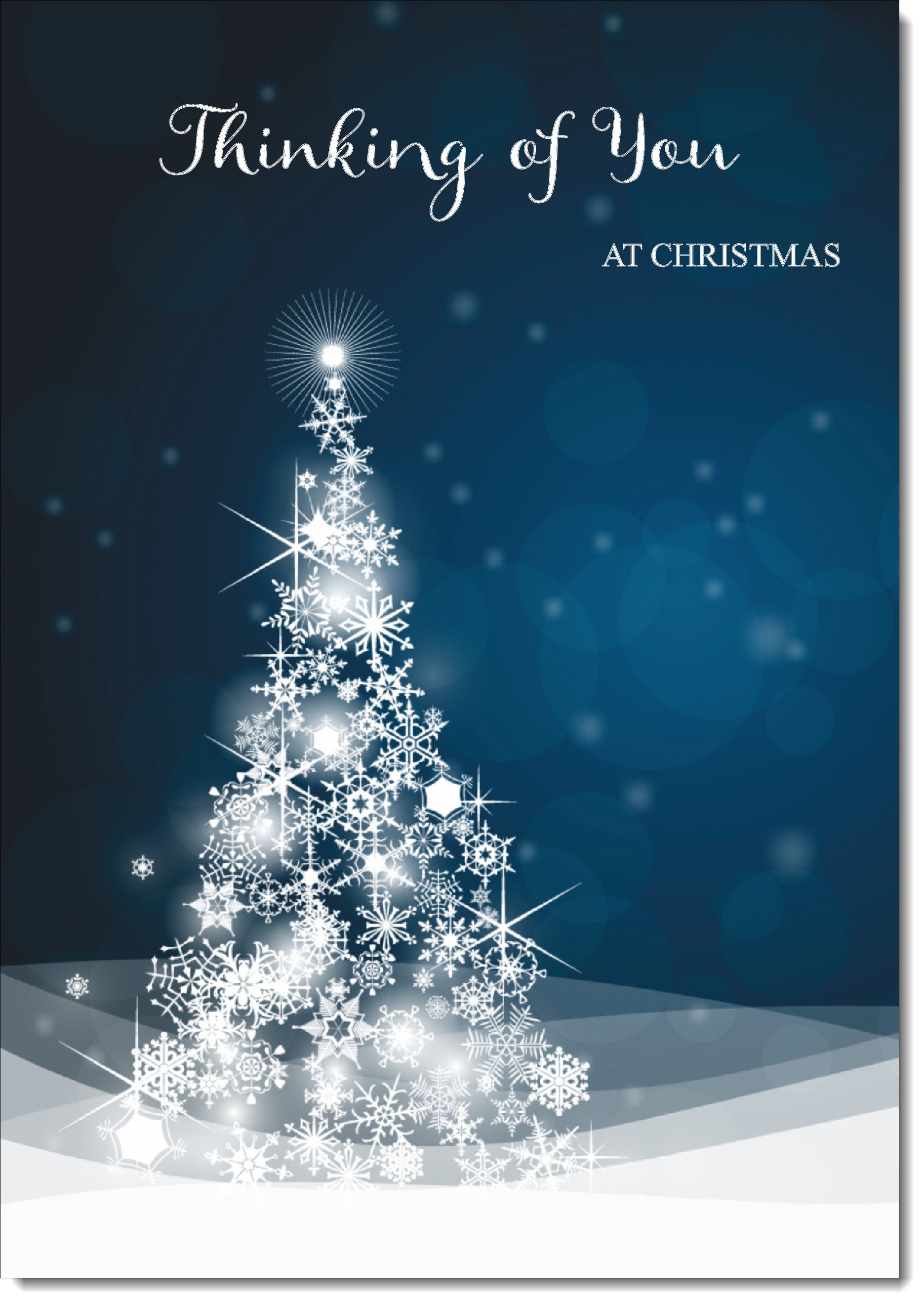 Thinking Of You Christmas Card Blue Abstract Christmas Tree