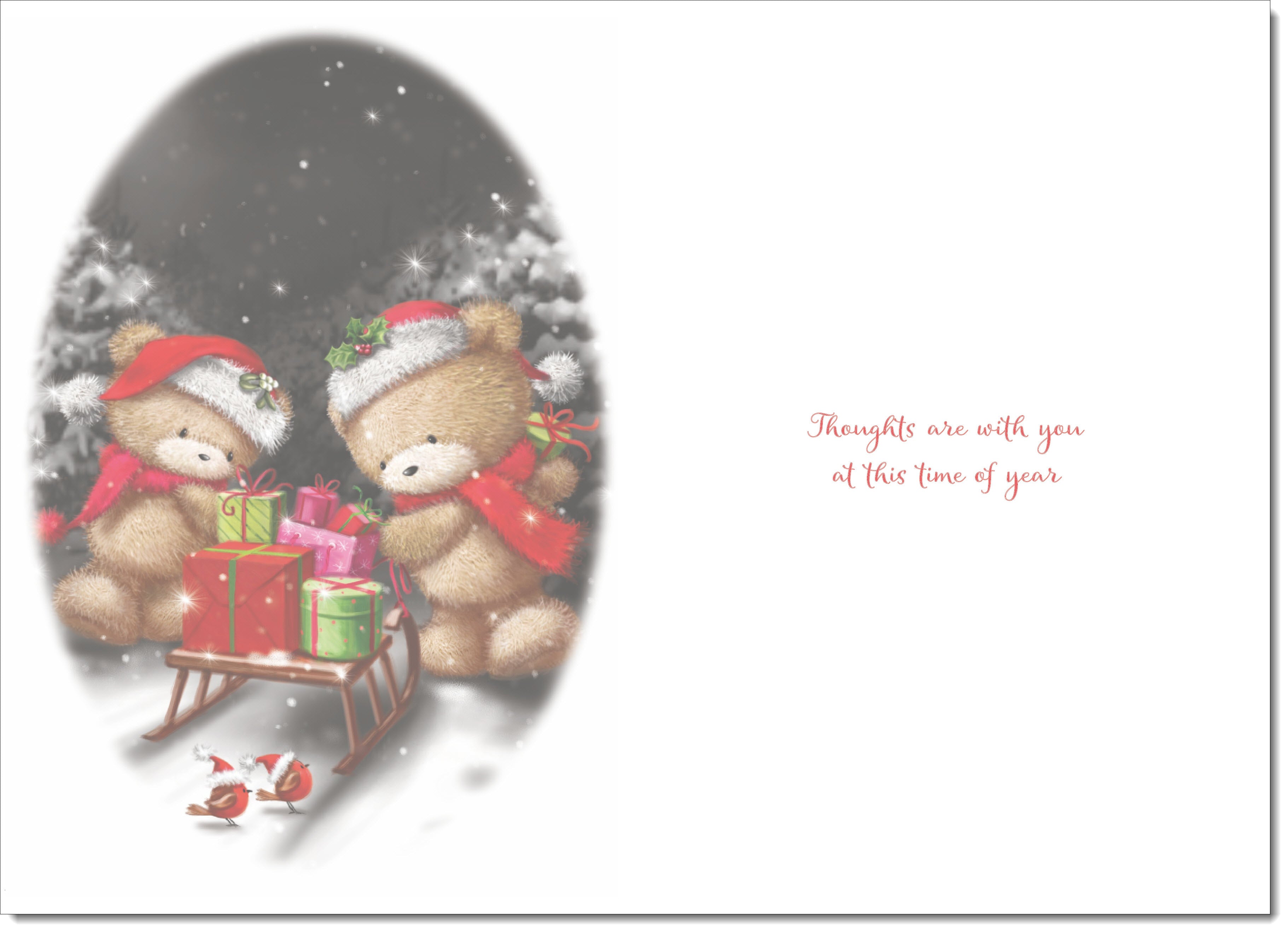 Thinking Of You Christmas Card Cute Bears at Night