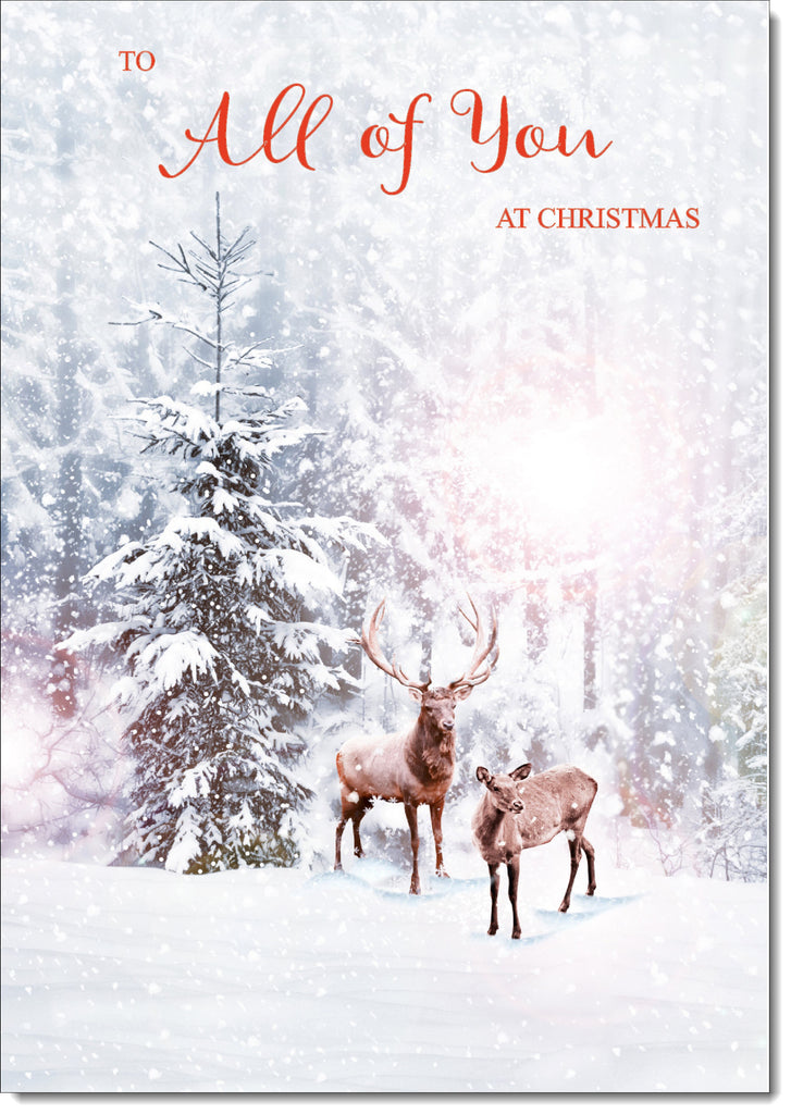 To All Of You Christmas Card Stag and Doe in Snowy Forest