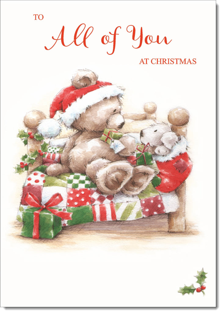 To All Of You Christmas Card Cute Bear in Christmas Parcel