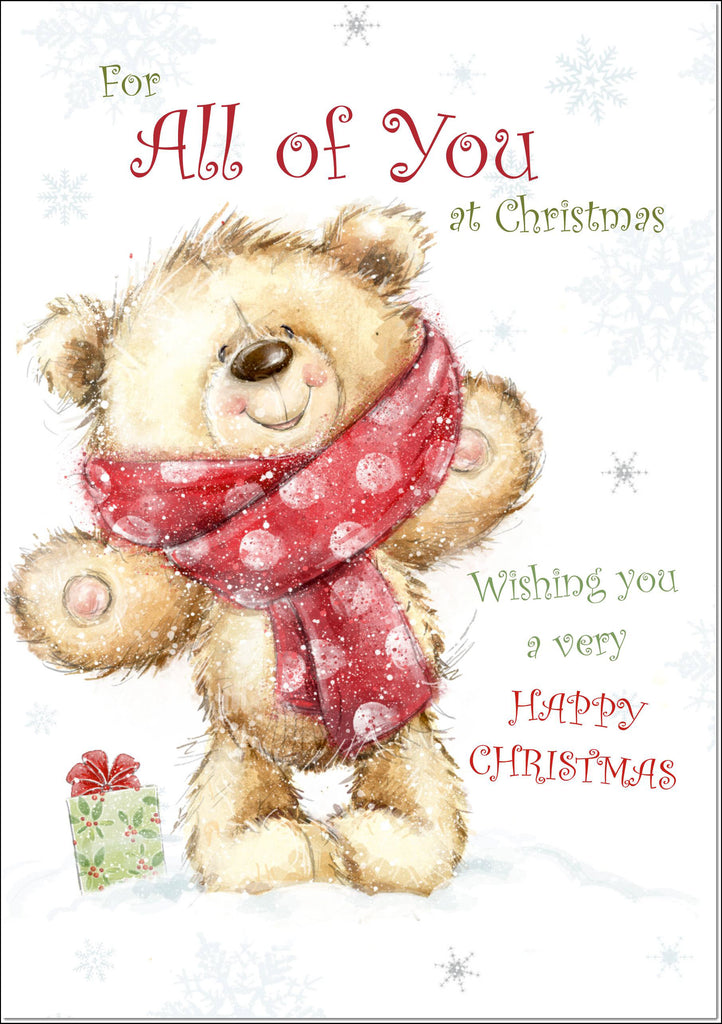 To All Of You Christmas Card Teddy Bear With Red Scarf