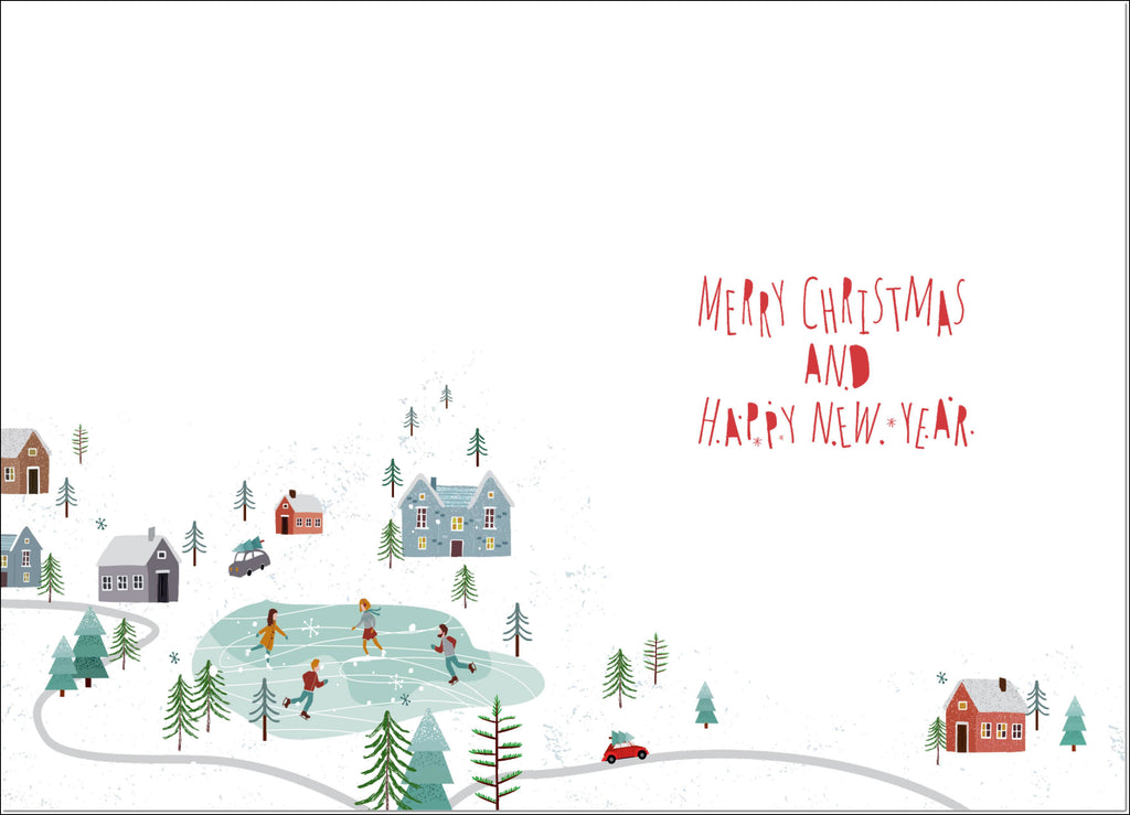 To All Of You Christmas Card Mountain Scene In Snowy Village
