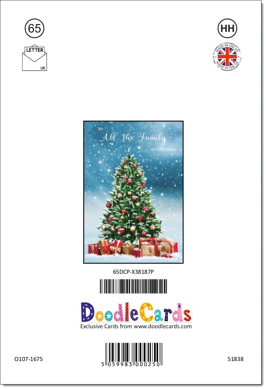 To All The Family Christmas Card Christmas Tree and Parcels