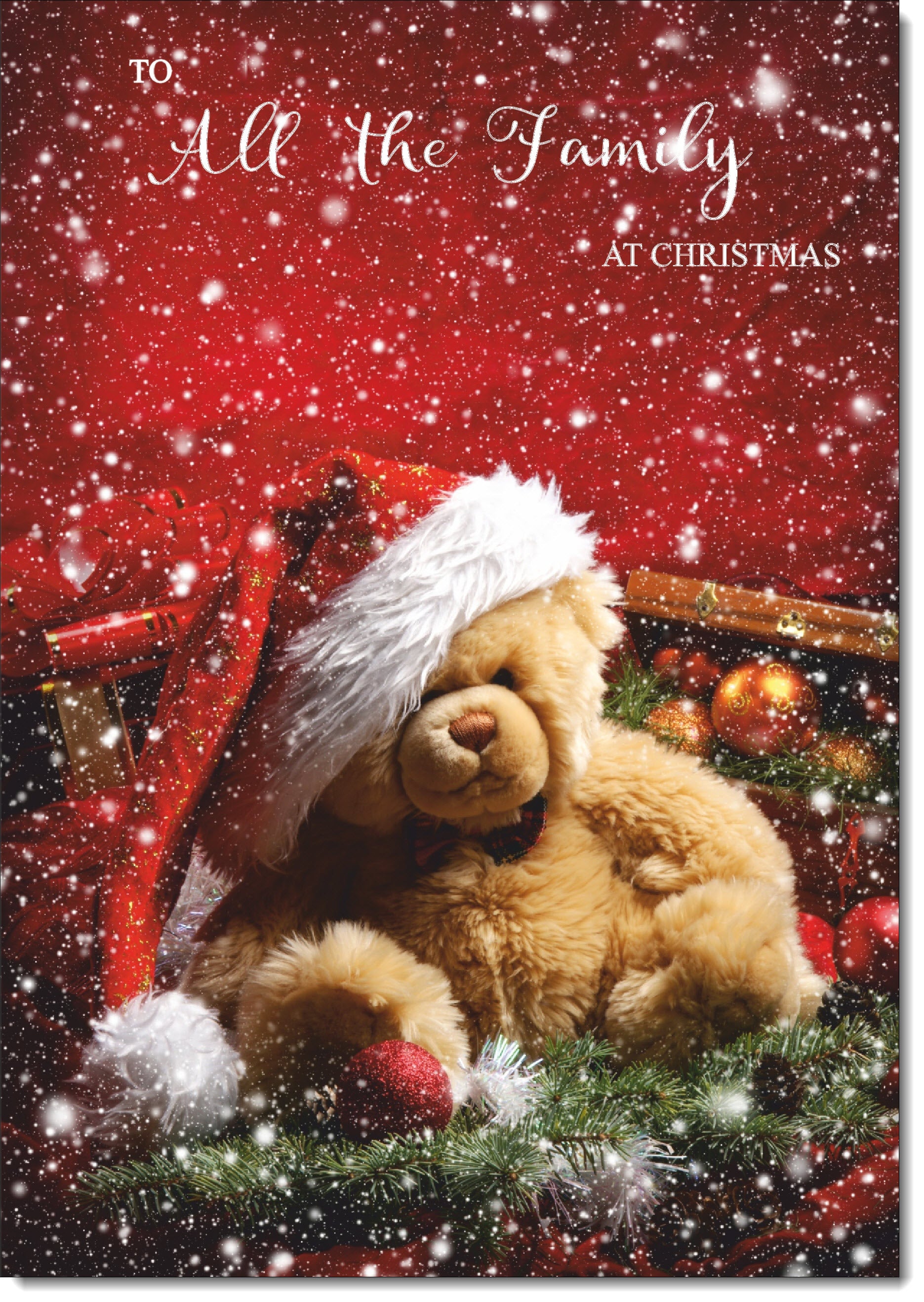 To All The Family Christmas Card Teddy Bear in Santa Hat