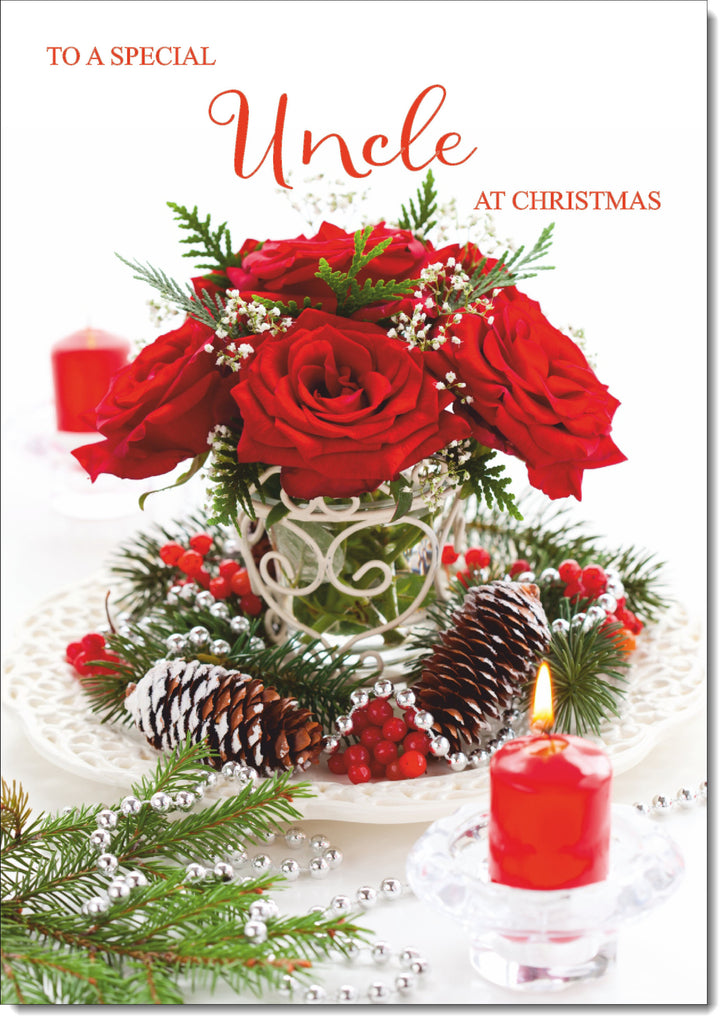 Uncle Christmas Card Red Roses Christmas Arrangement