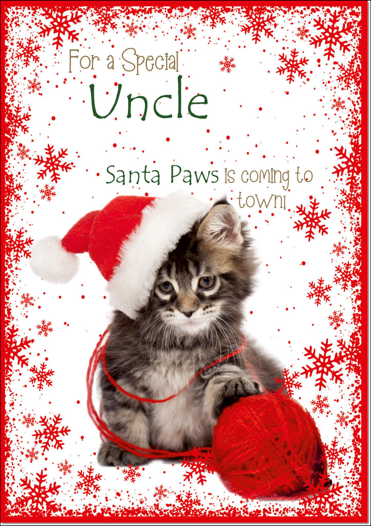 Uncle Christmas Card Cute Santa Paws Kitten Cat Pet