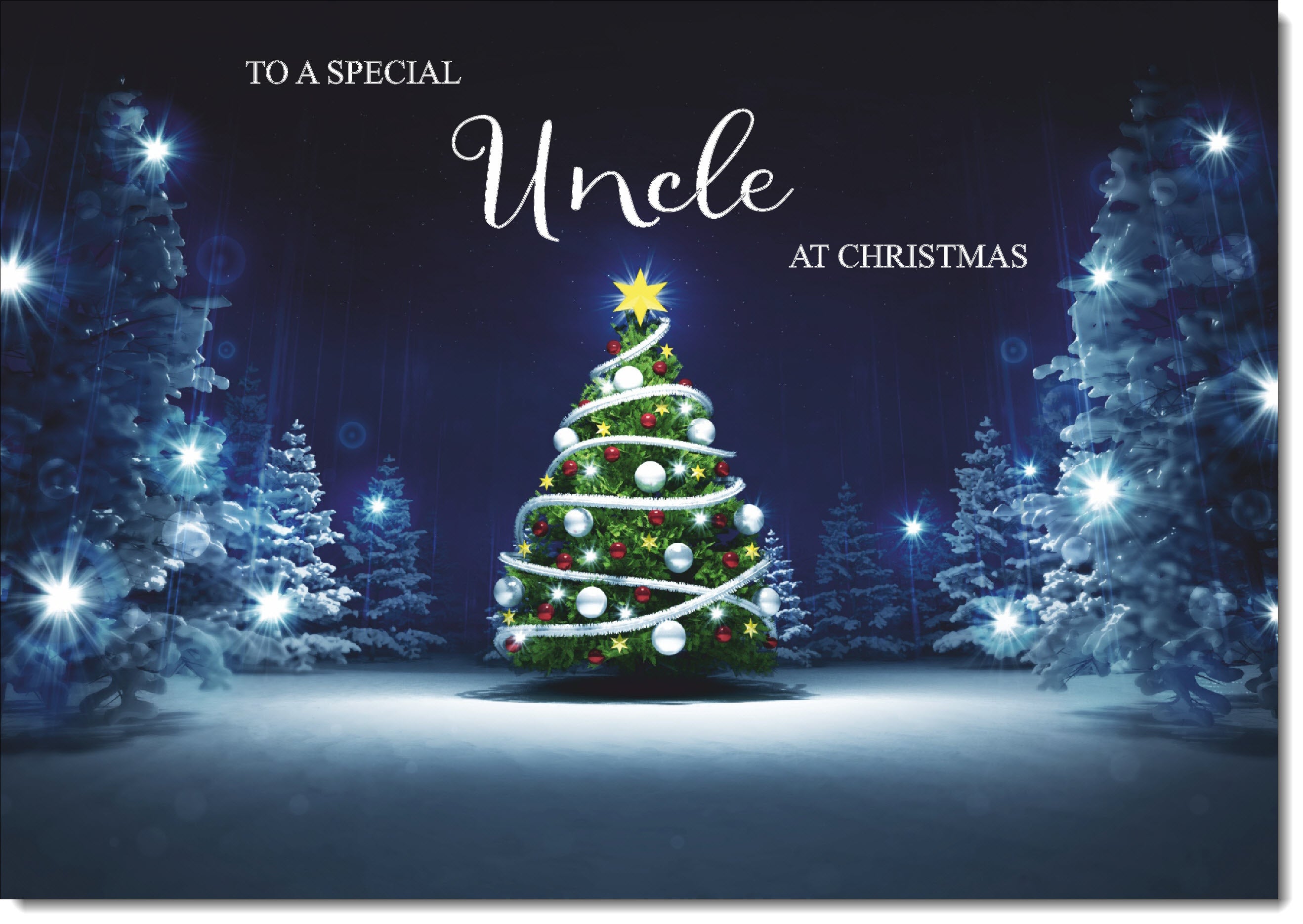 Uncle Christmas Card Christmas Tree Lights in Dark Sky