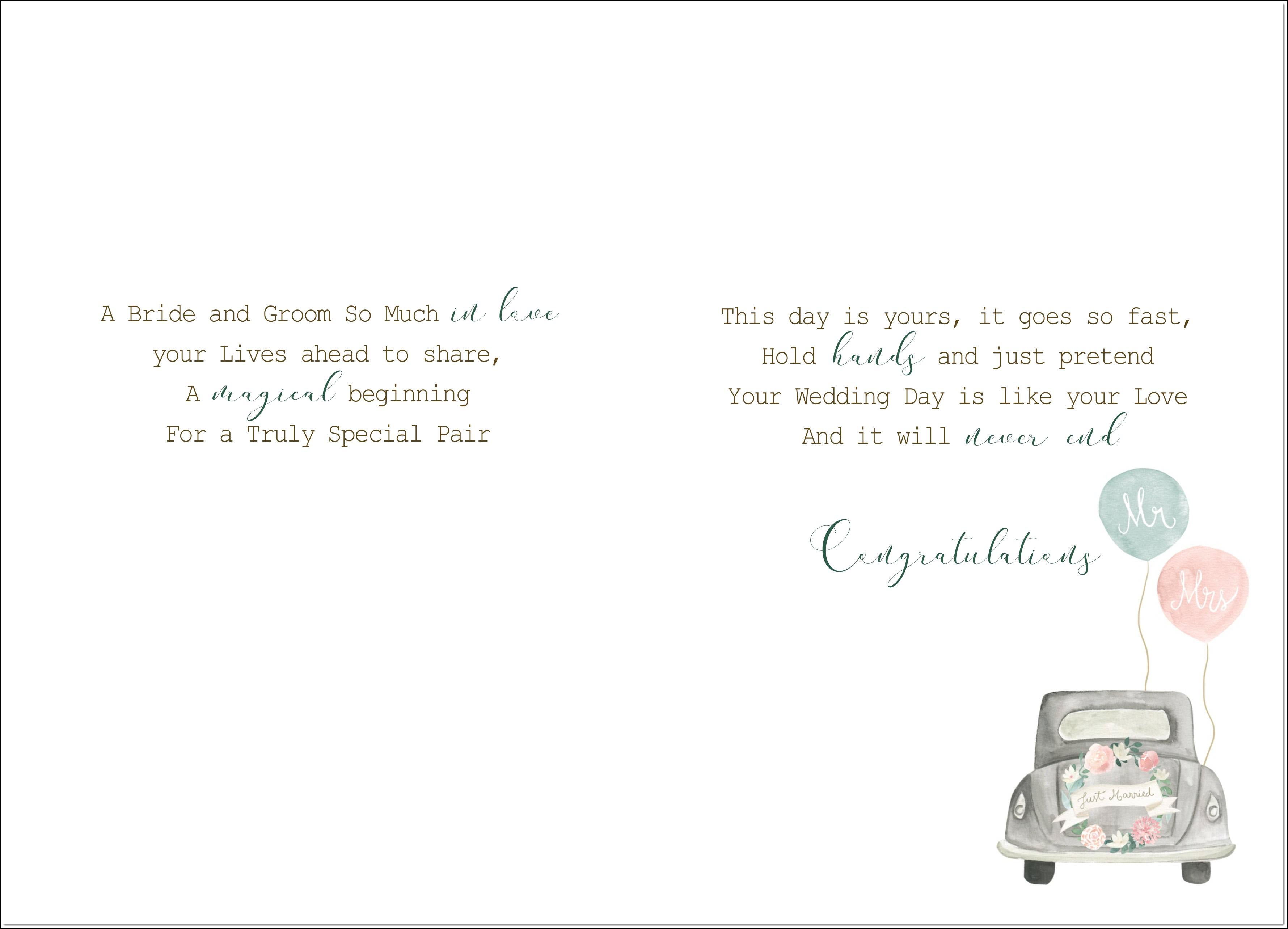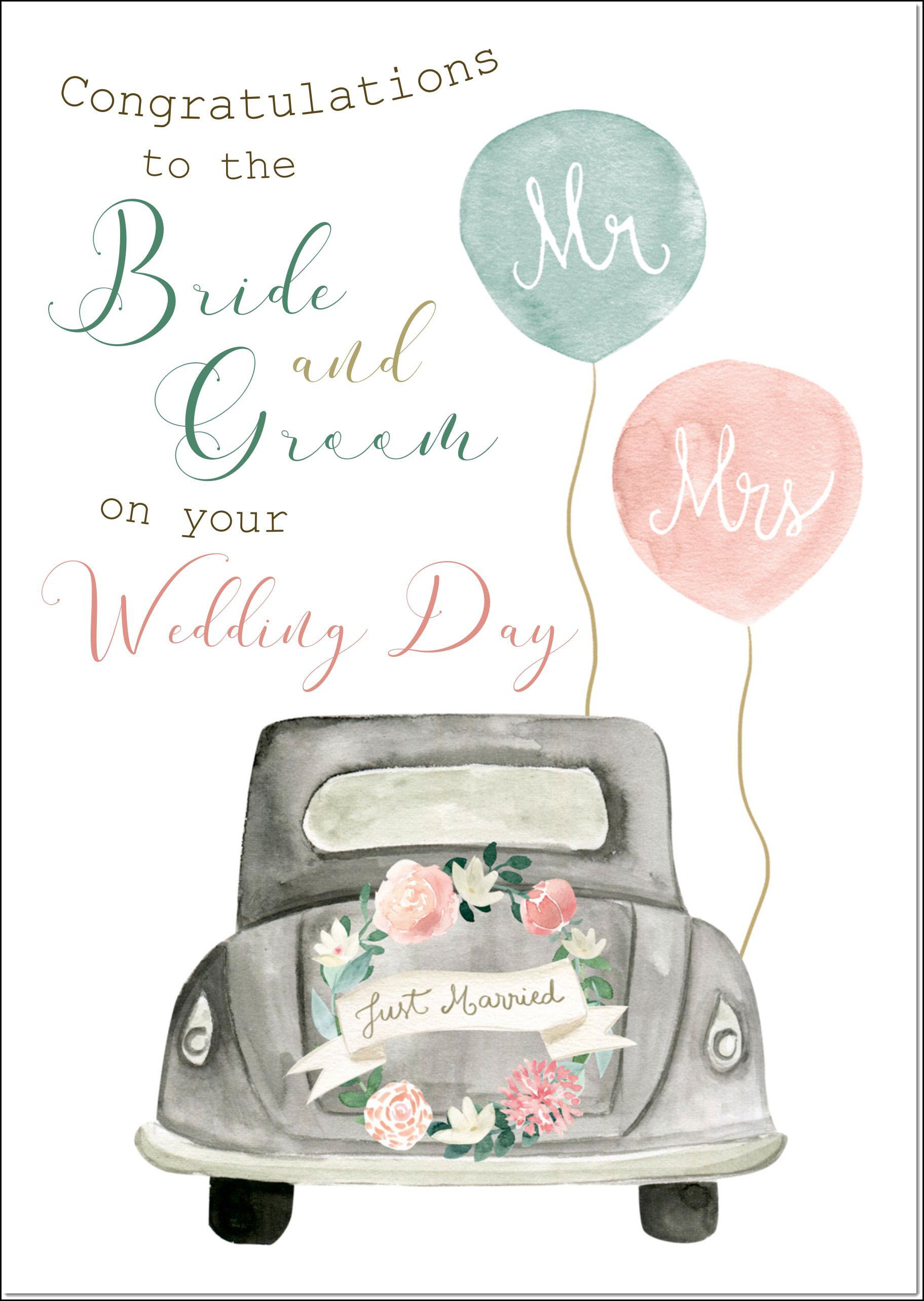 Wedding Day Card Bride and Groom Wedding Car