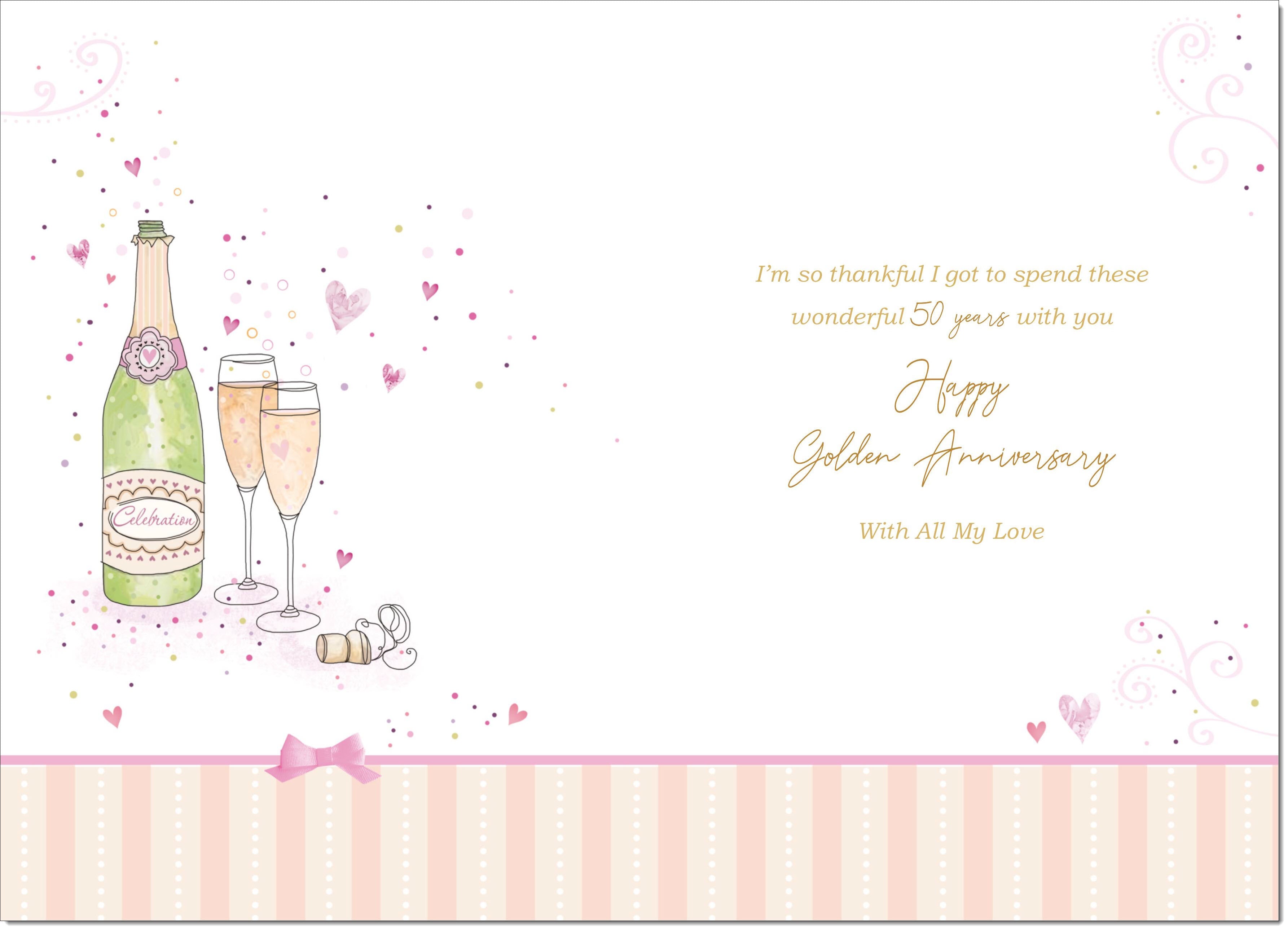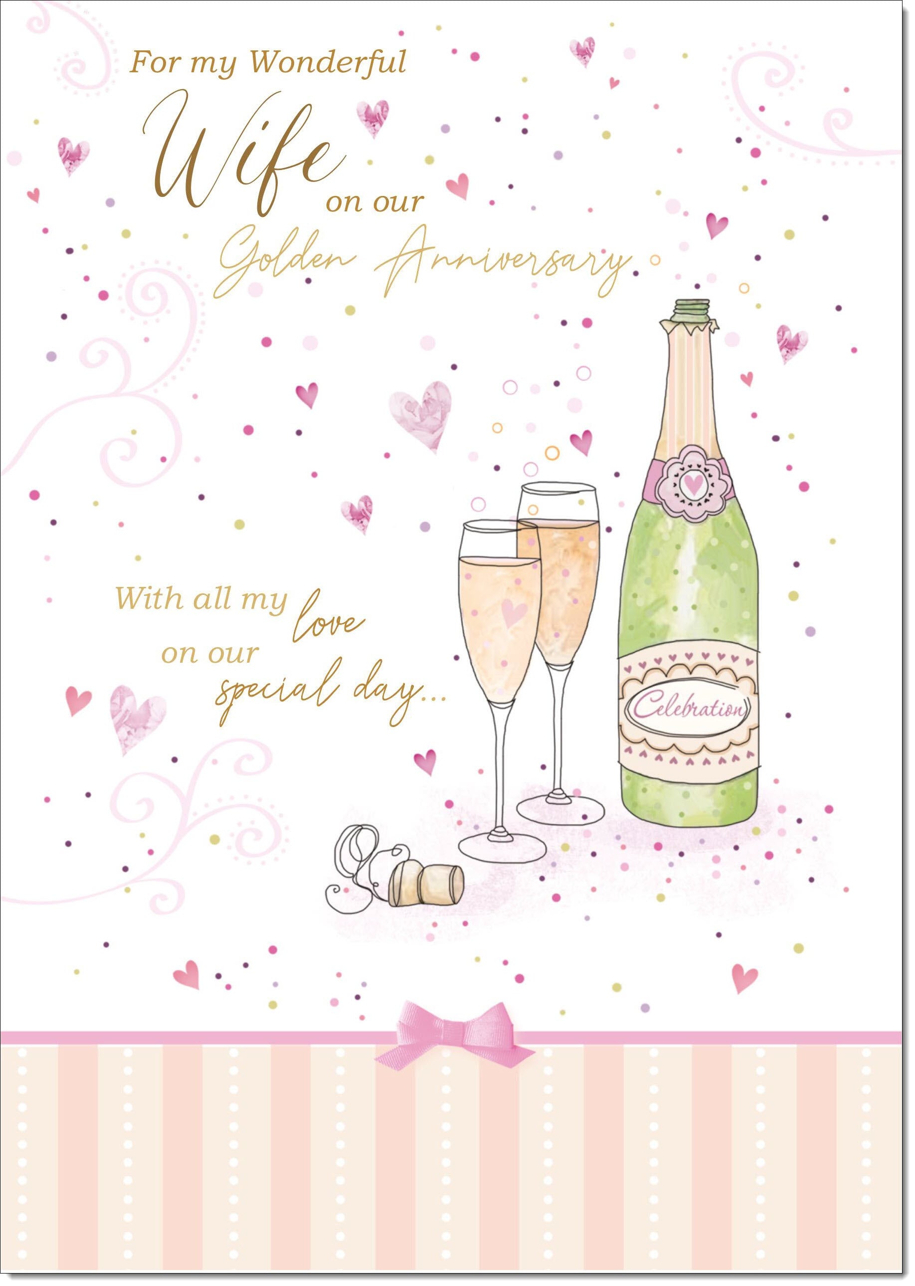 Wife Golden 50th Wedding Anniversary Card Champagne