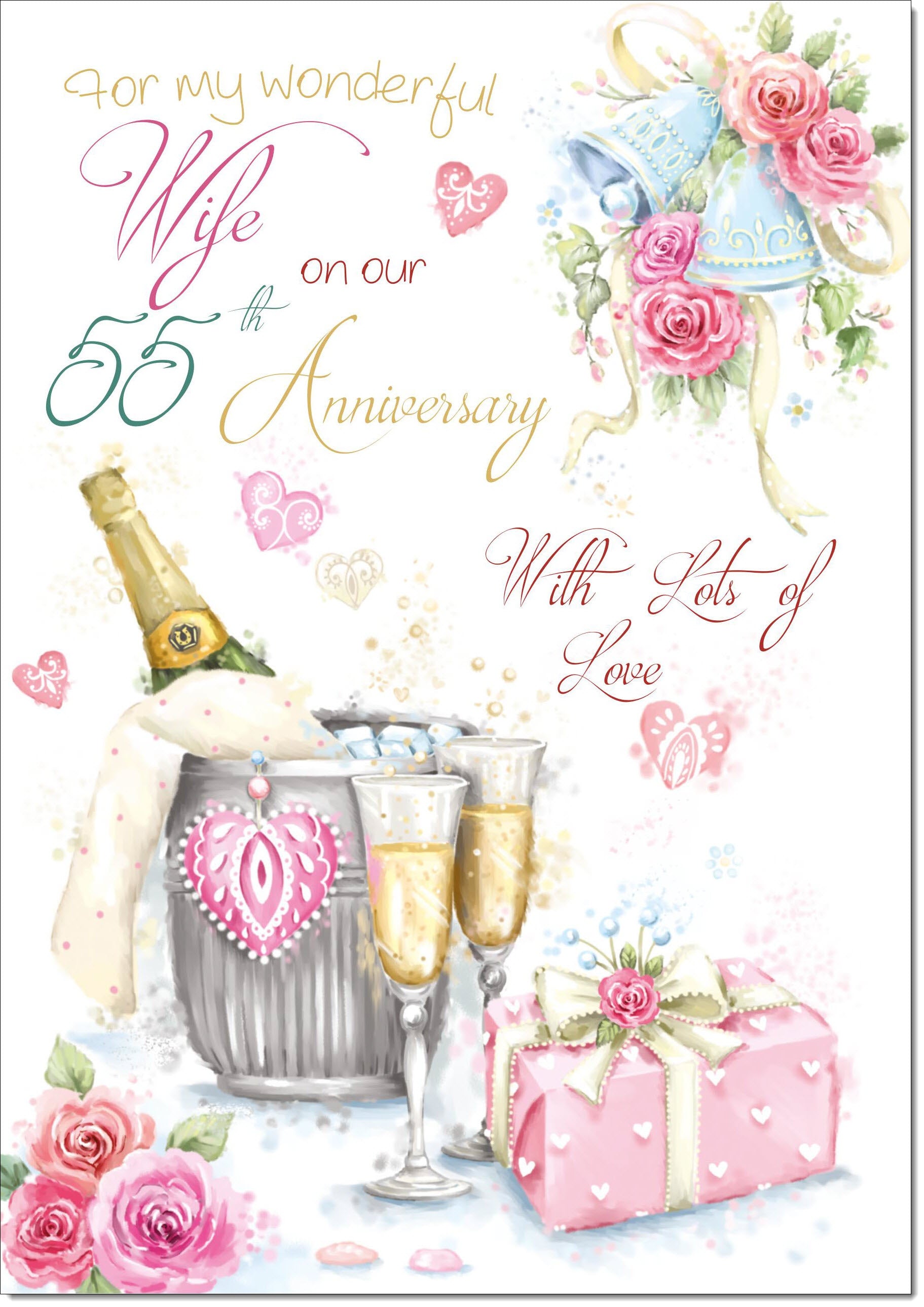 Wife Emerald 55th Wedding Anniversary Card Champagne Bucket