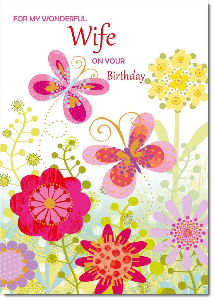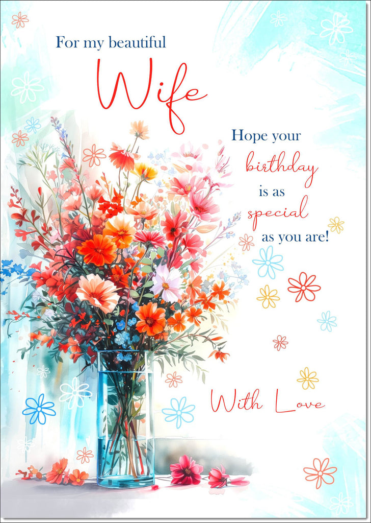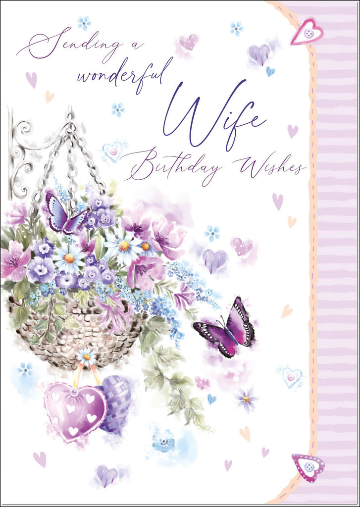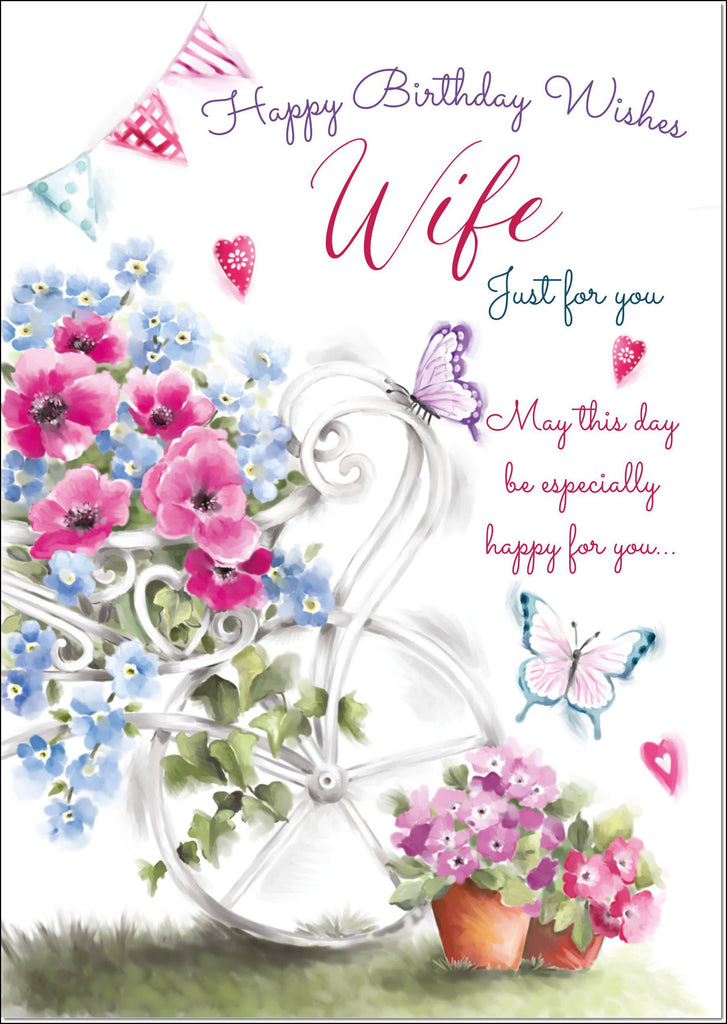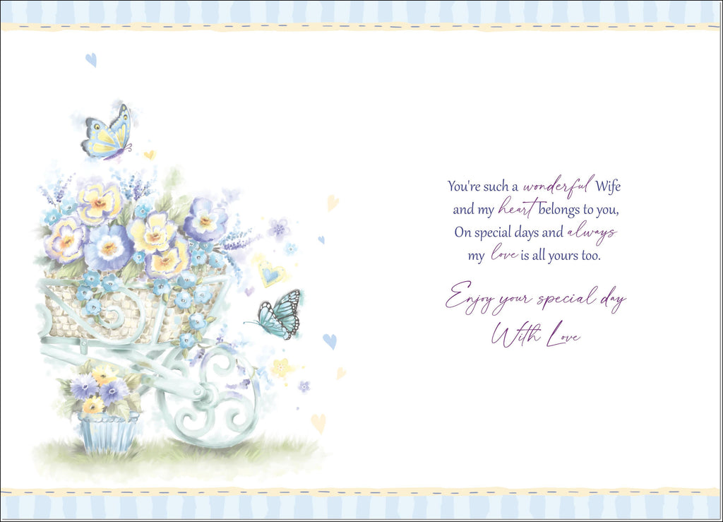 Wife Birthday Card Garden Wheelbarrow Bouquet
