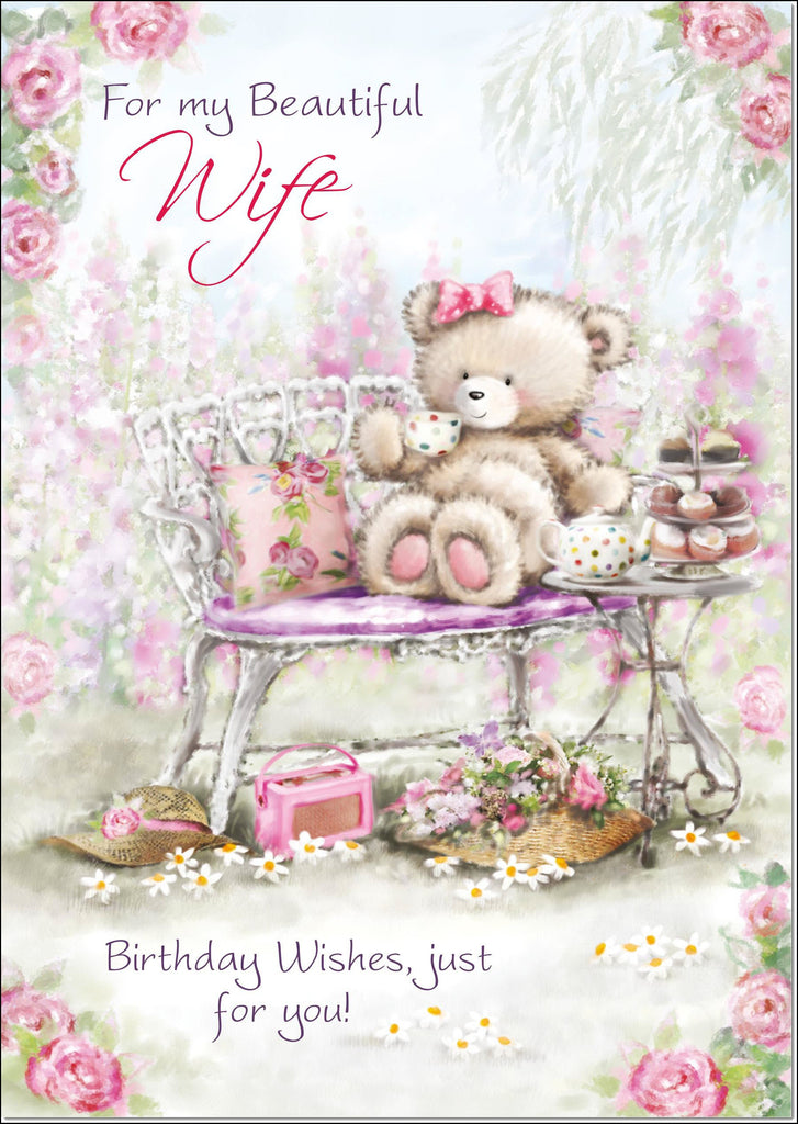 Wife Birthday Card Cute Teddy's Afternoon Tea