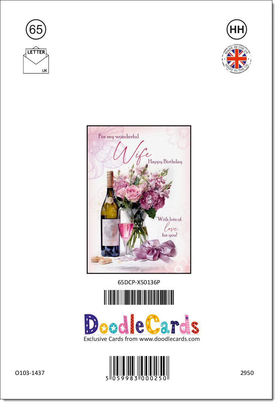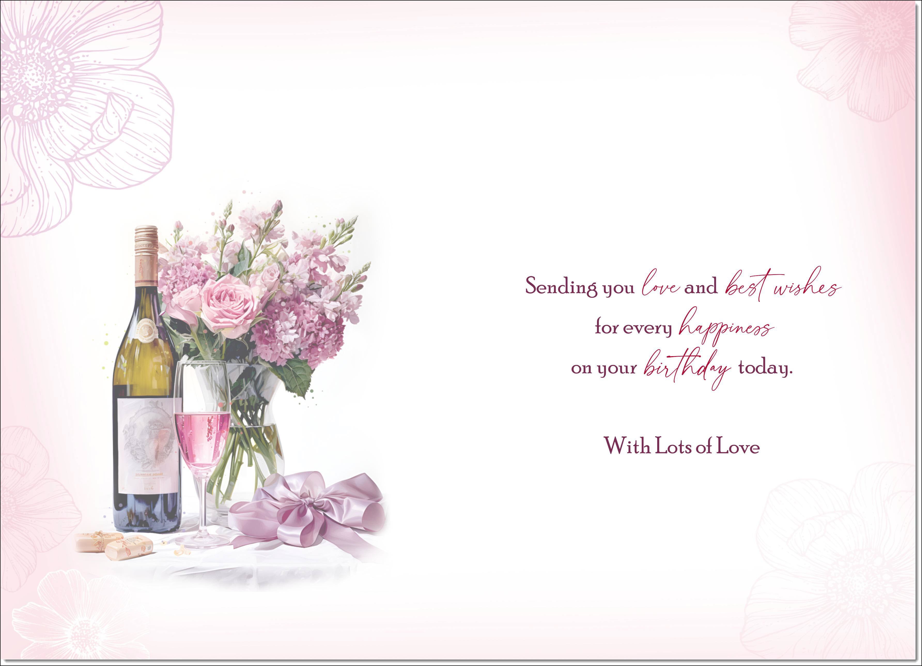 Wife Birthday Card Roses and Red Wine