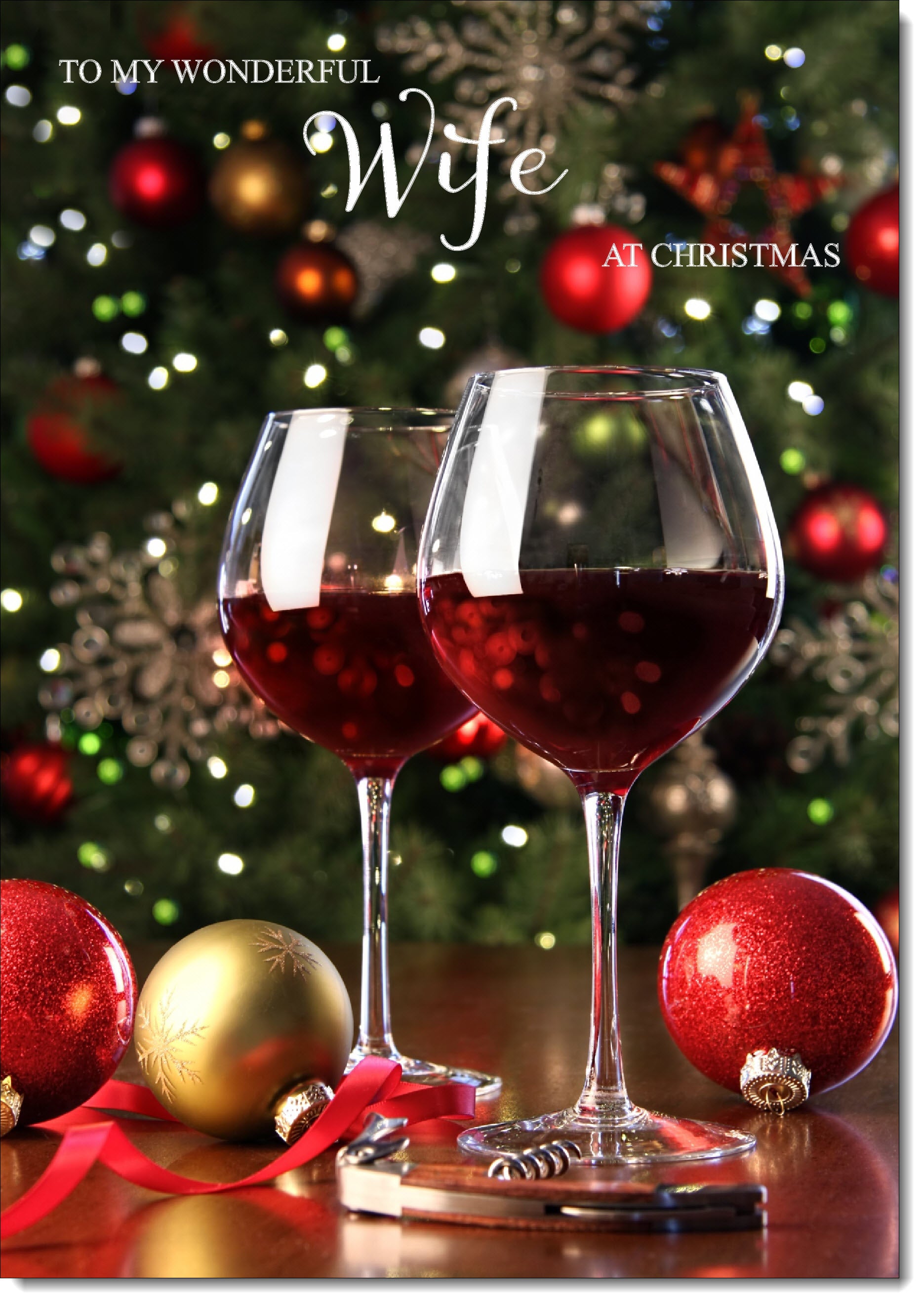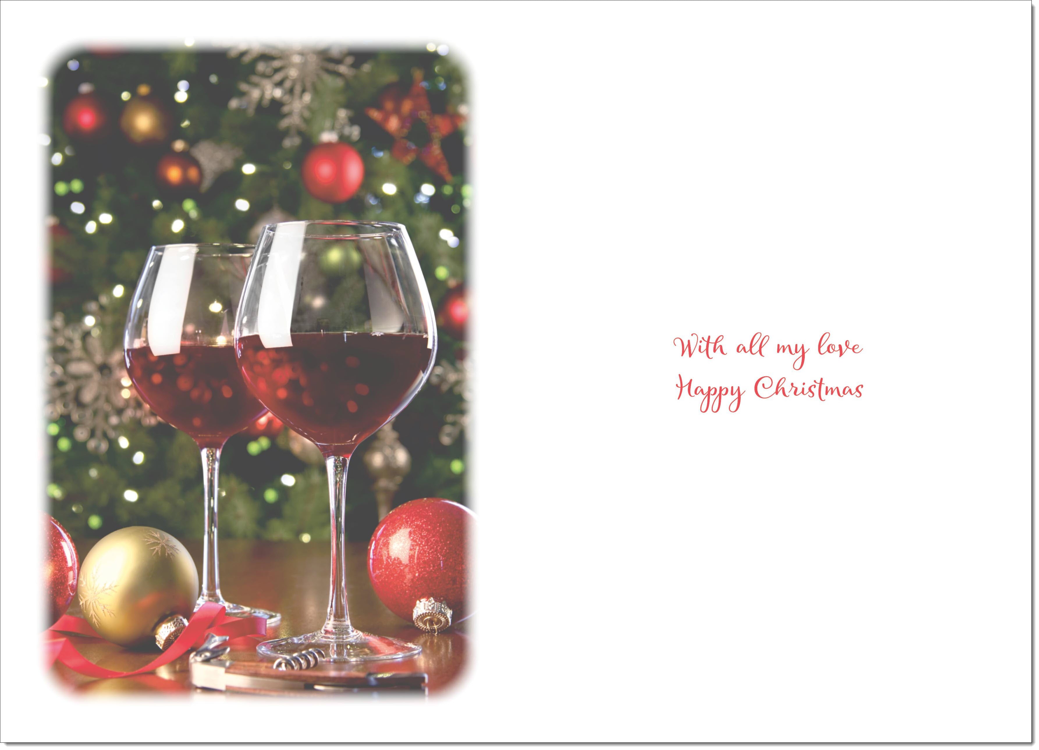 Wife Christmas Card Red Wine Glasses