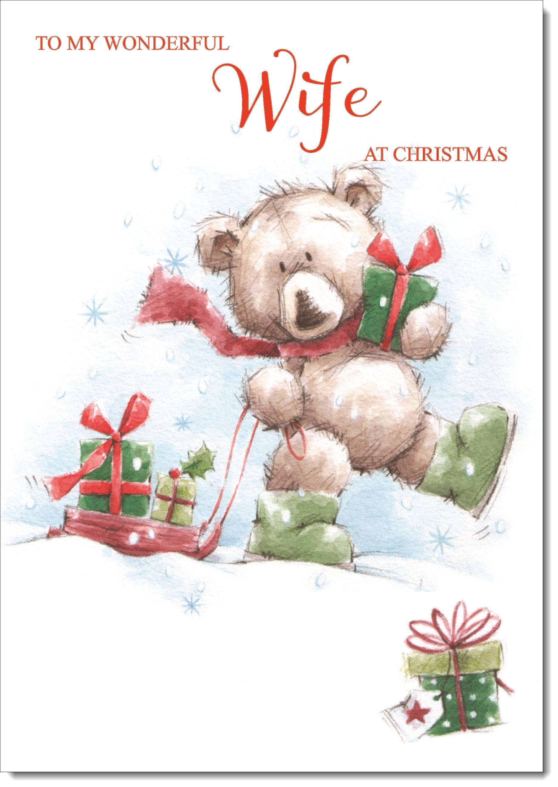 Wife Christmas Card Cute Bear with Sled