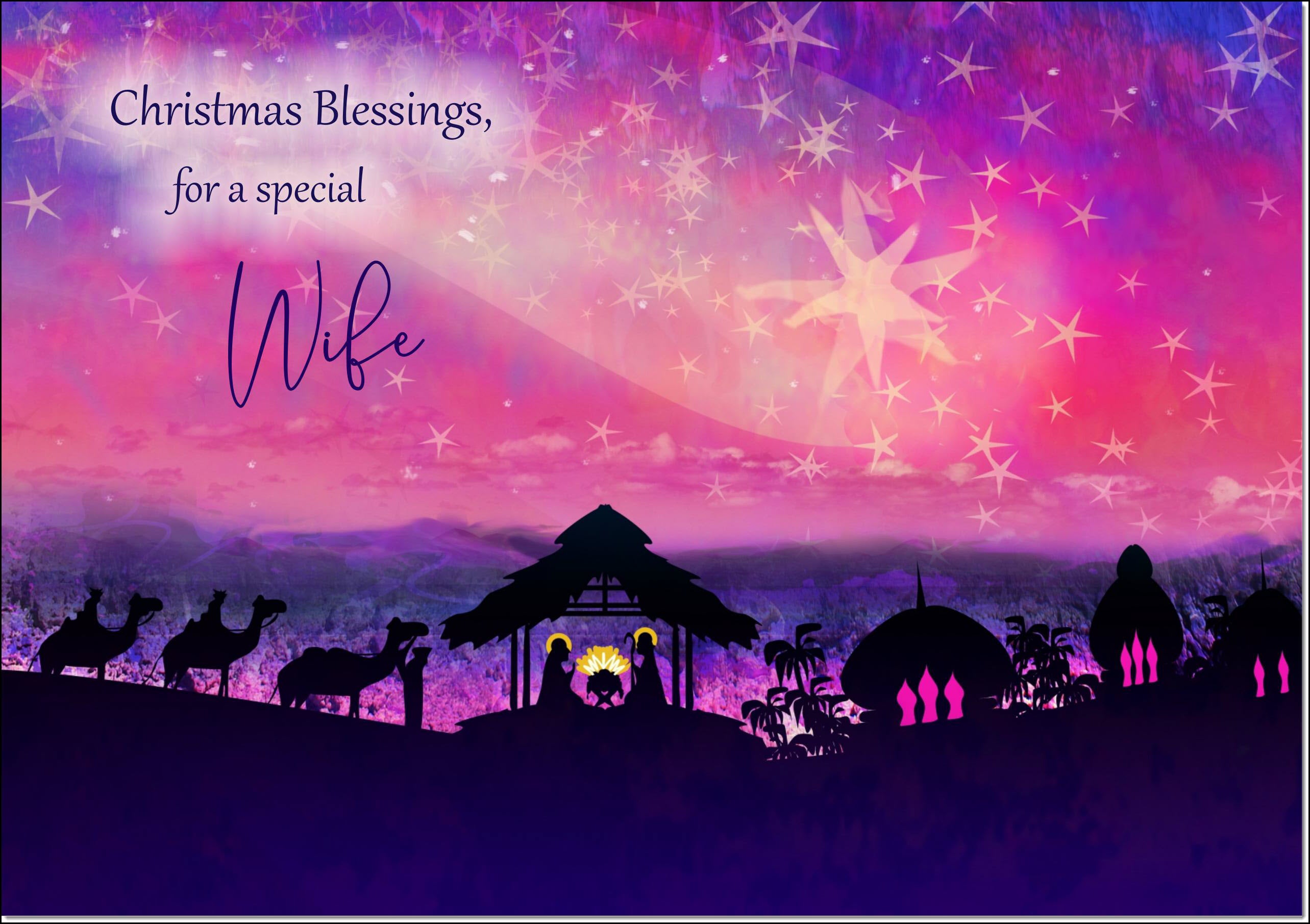 Wife Christmas Card Nativity Scene Evening Watercolour