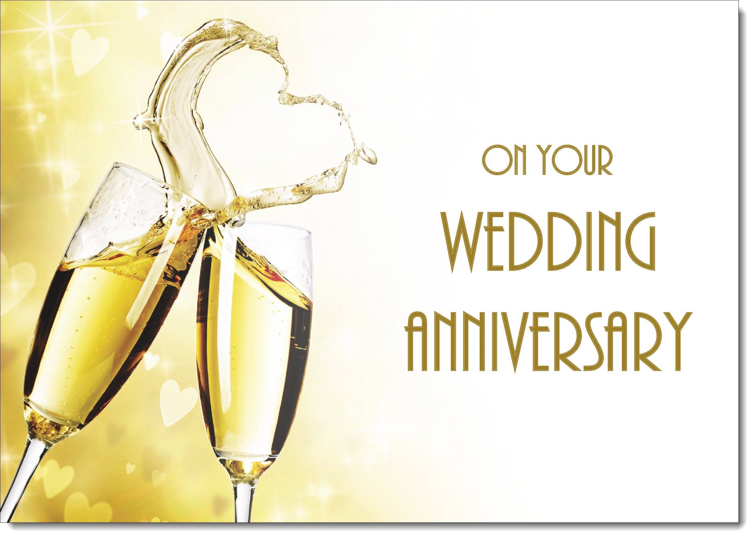 Your Wedding Anniversary Card Love Heart Champagne Glasses