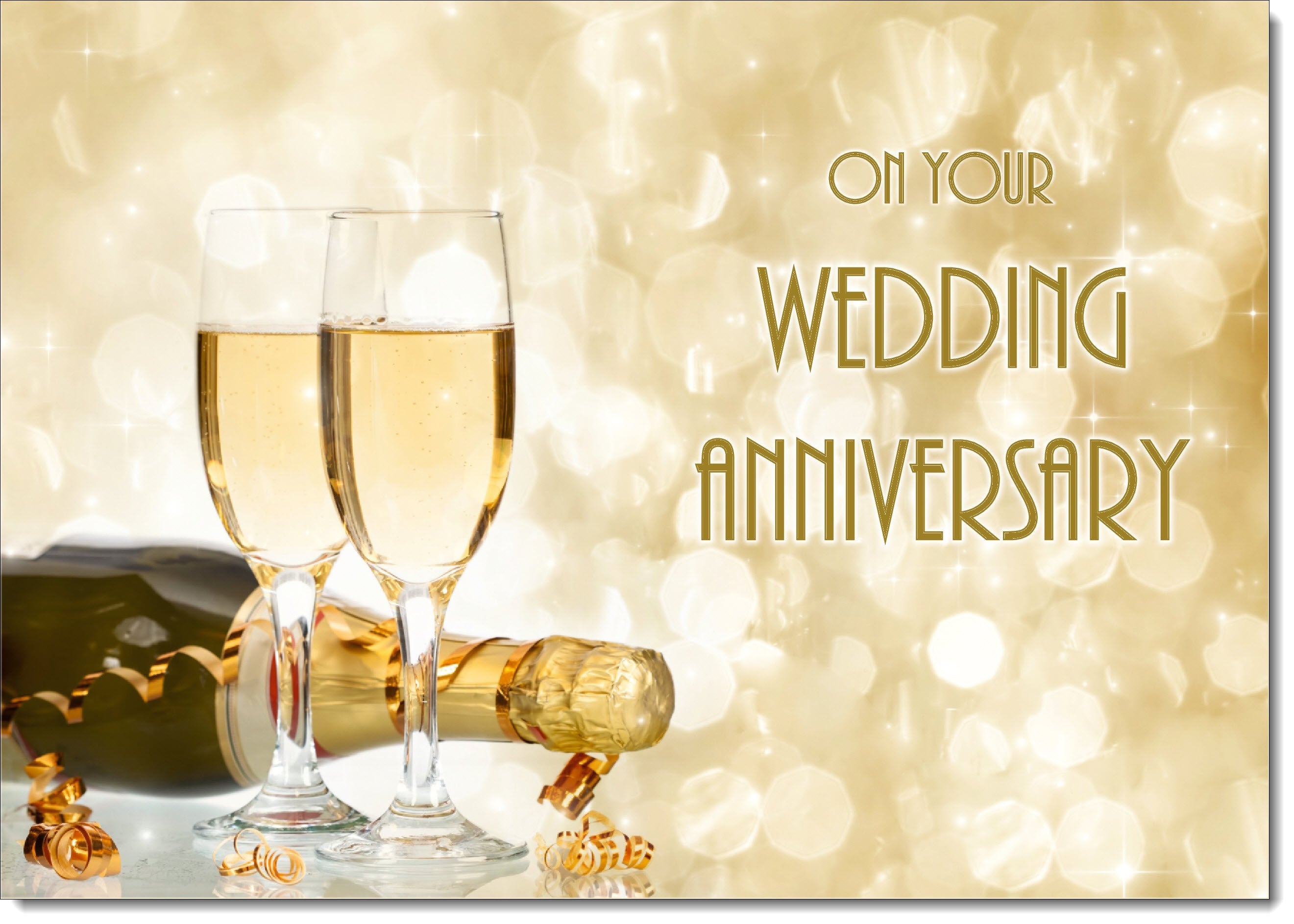 Your Wedding Anniversary Card Champagne Bottle and Glasses