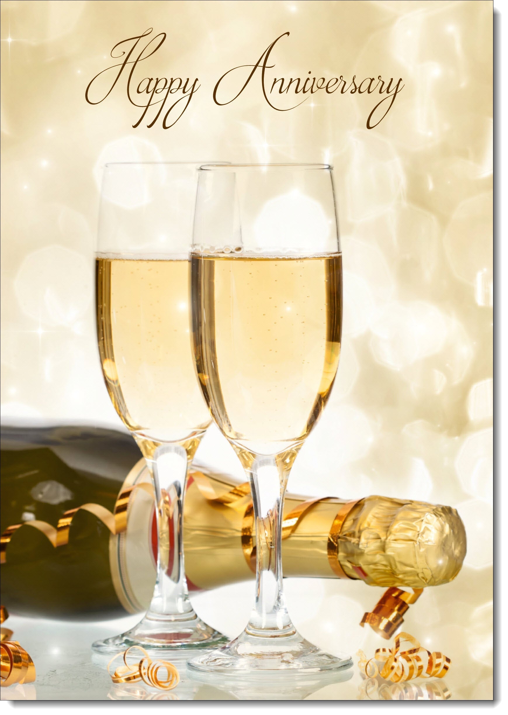 Your Wedding Anniversary Card Champagne Bottle and Glasses