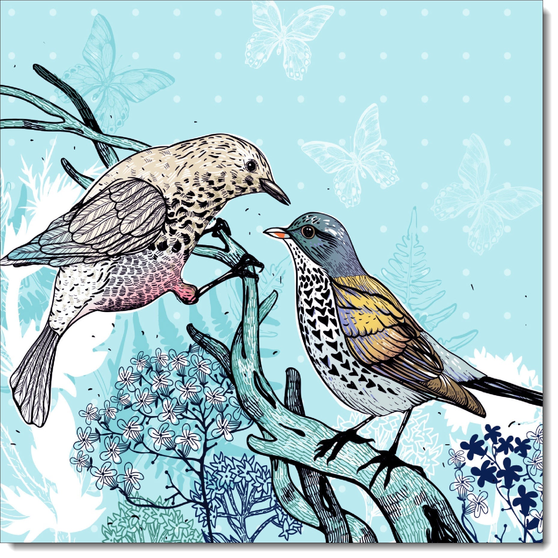 Blank Birthday Card No Words Birds