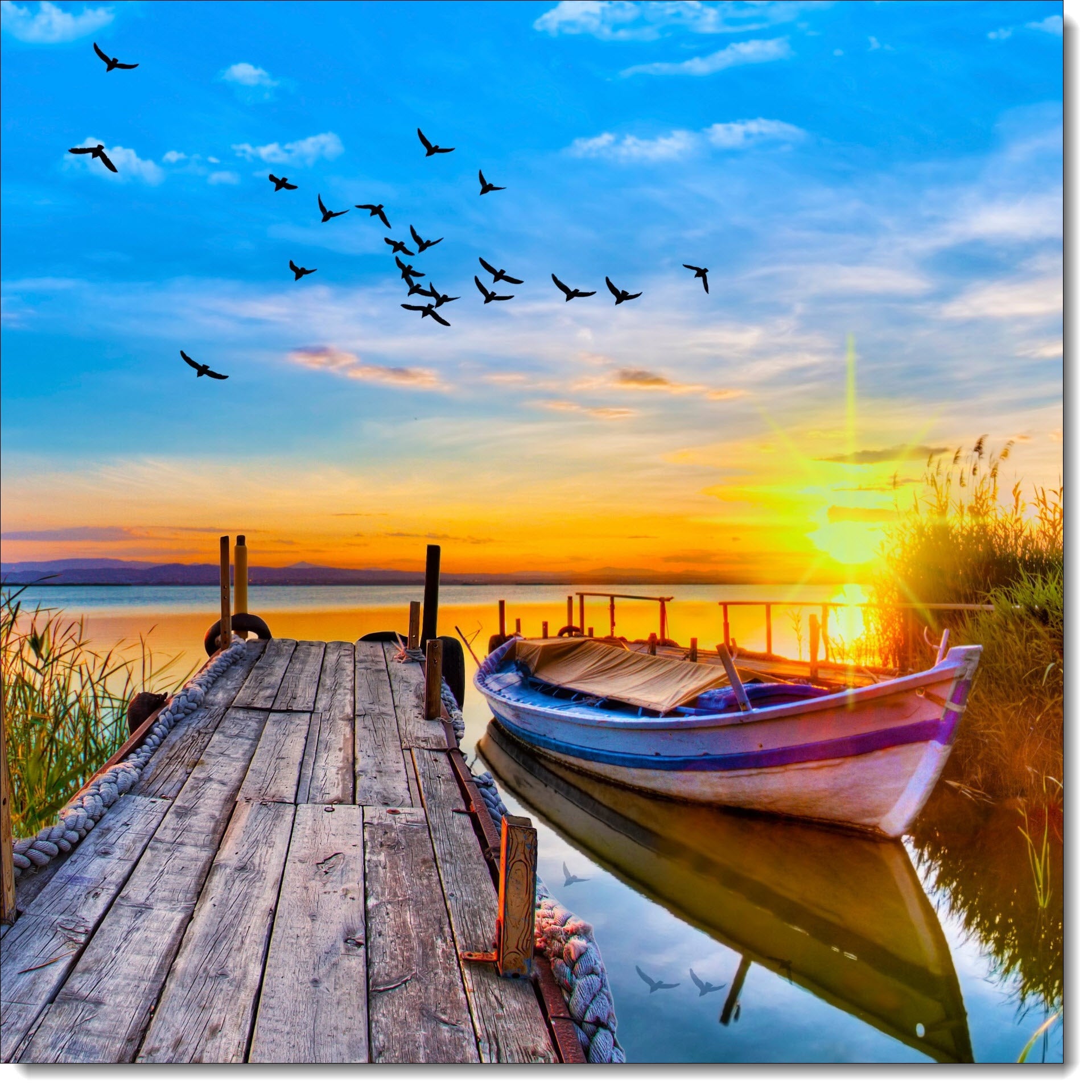 Coastal Birthday Card Wooden Pier and Rowing Boat