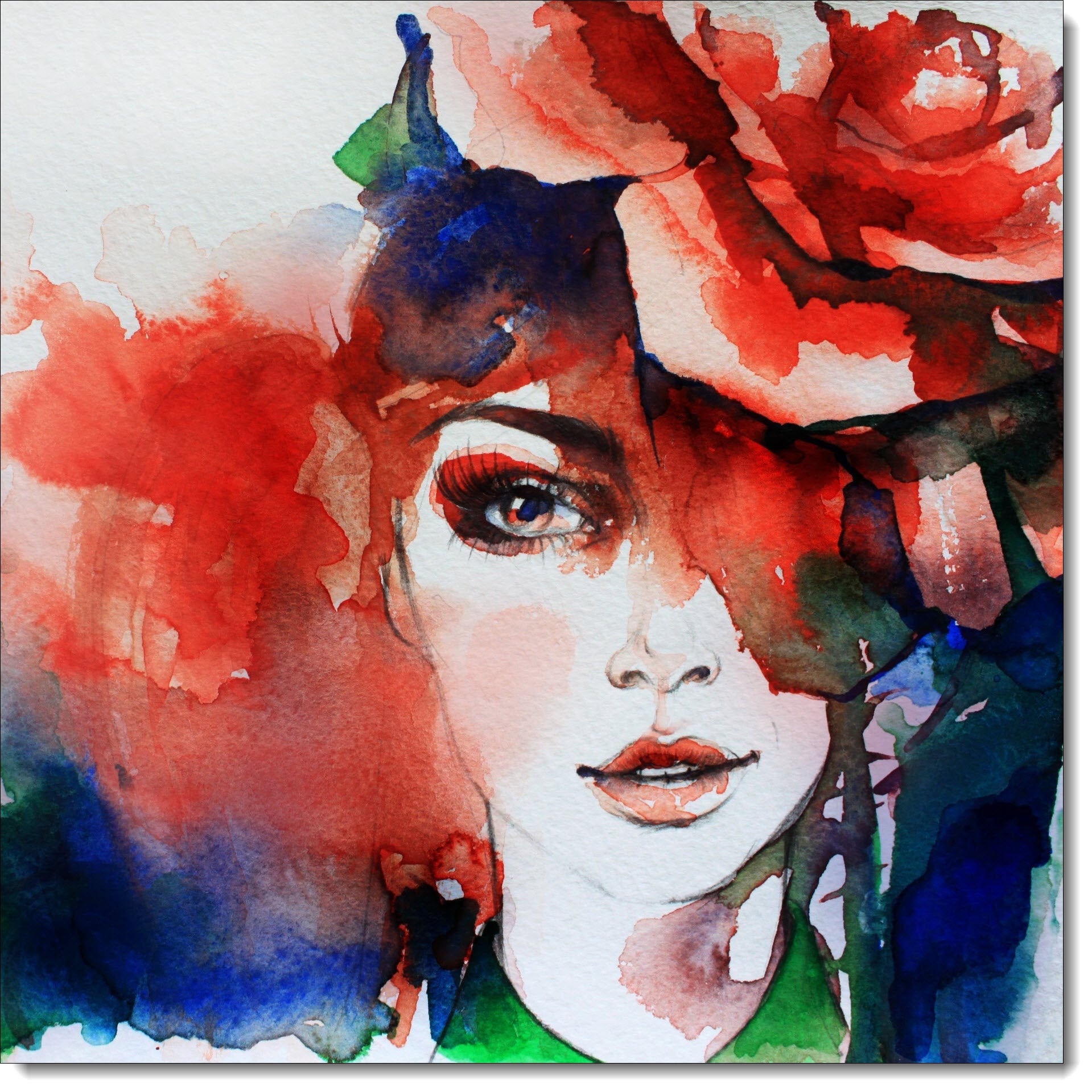 Happy Birthday Card Watercolour Lady Portrait