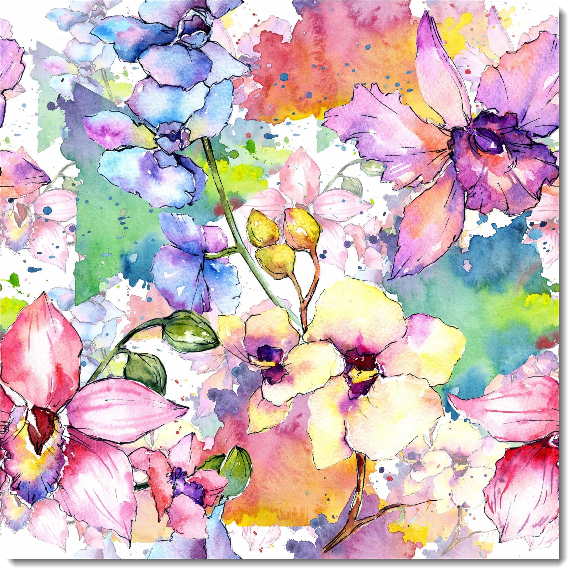 Happy Birthday Card Watercolour Flower Pattern