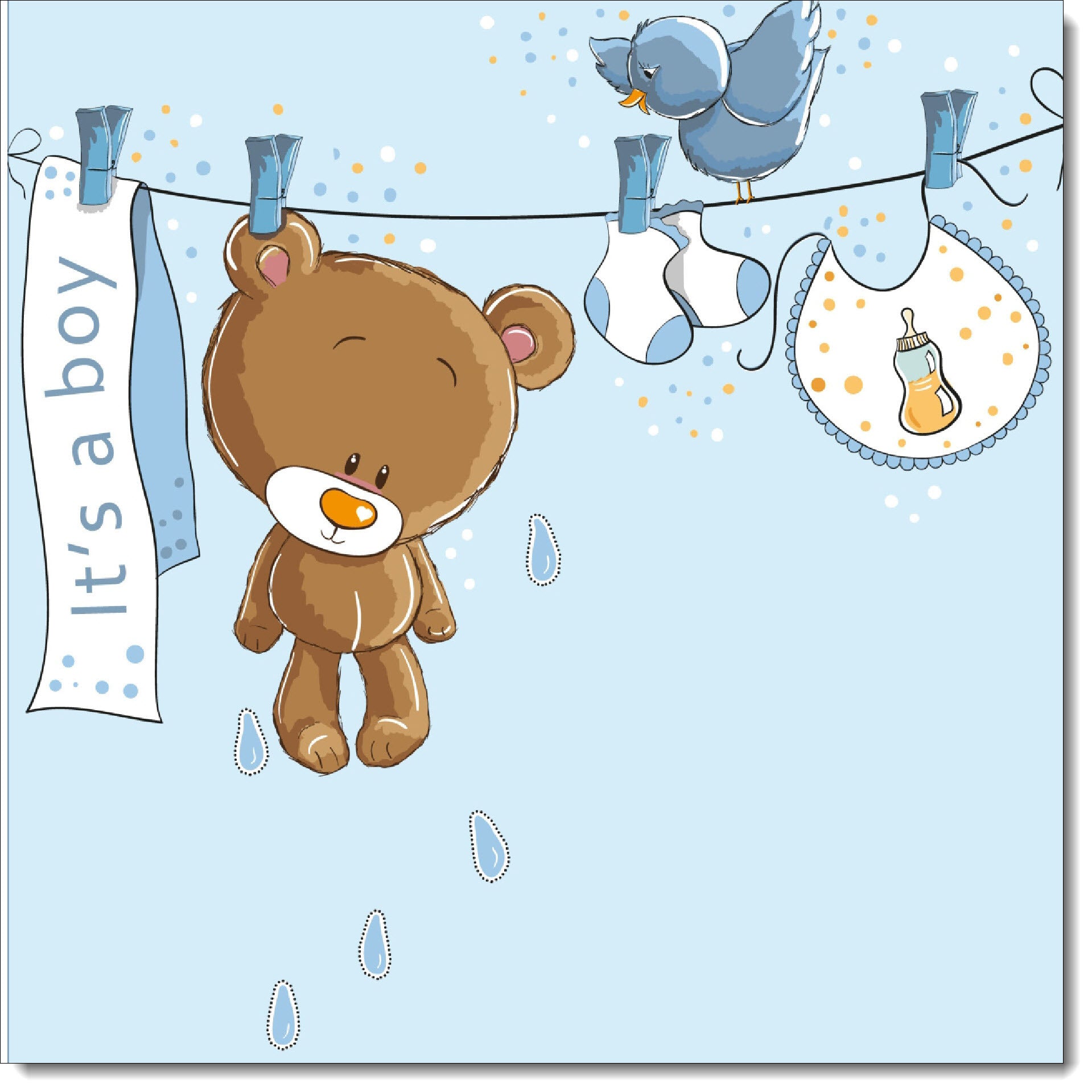 New Baby Boy Birth Congratulations Card Washing Line