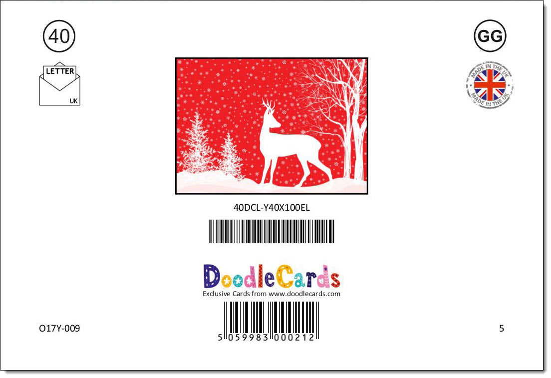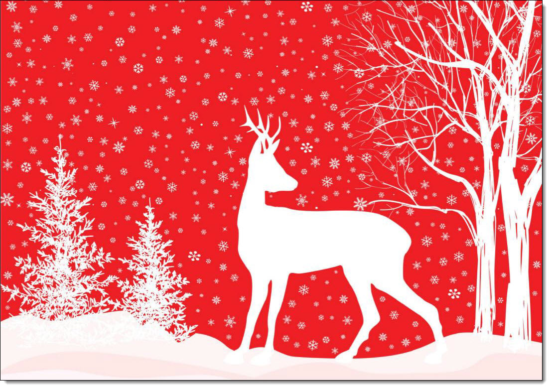 Pack of 10 Christmas Cards Reindeer in Snowy Forest Silhouette