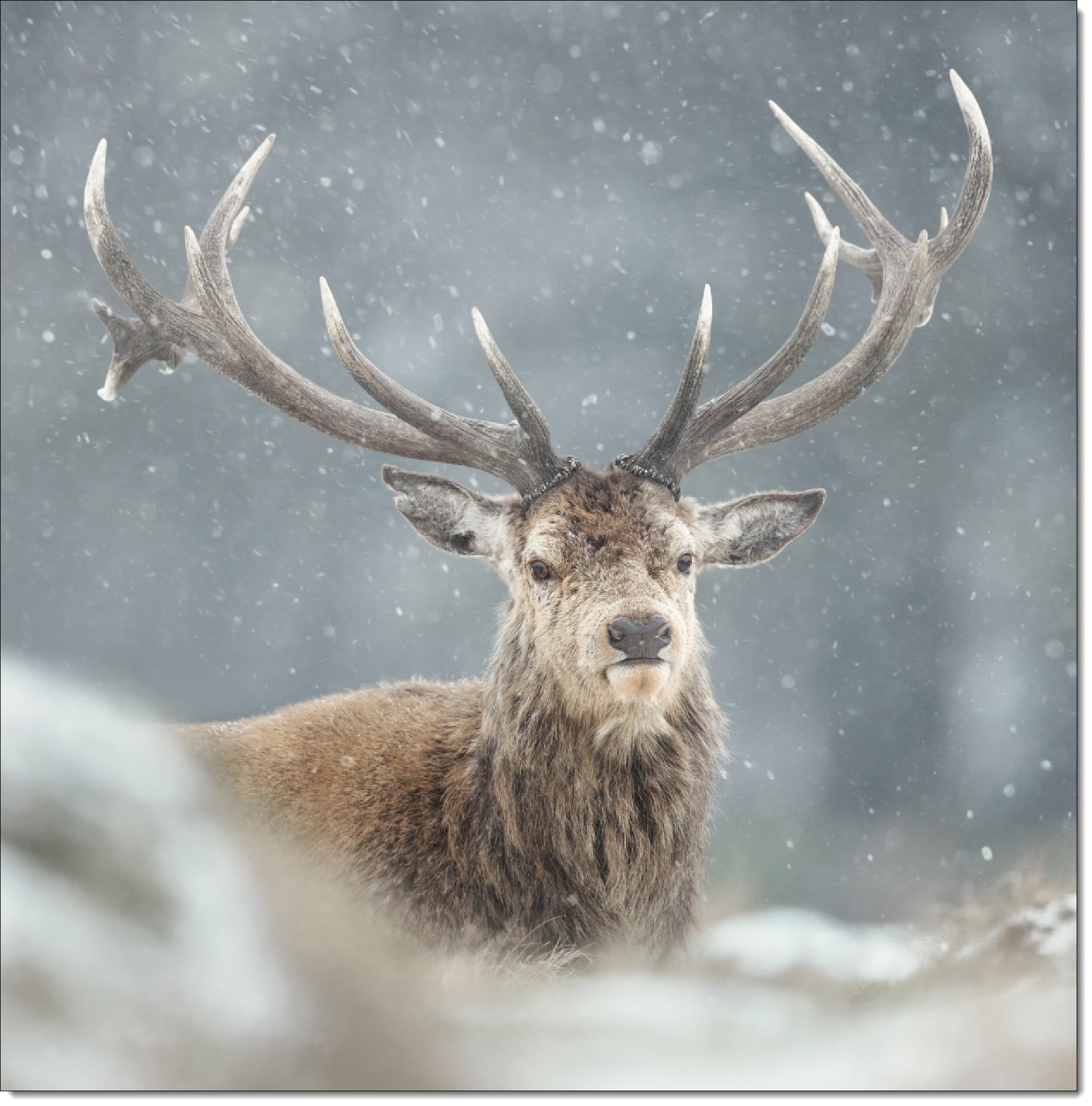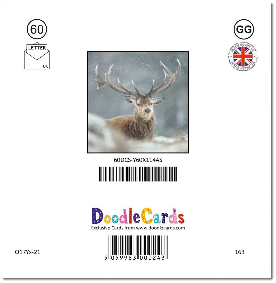 Pack of 10 Square Christmas Cards Red Deer Stag in the Snow