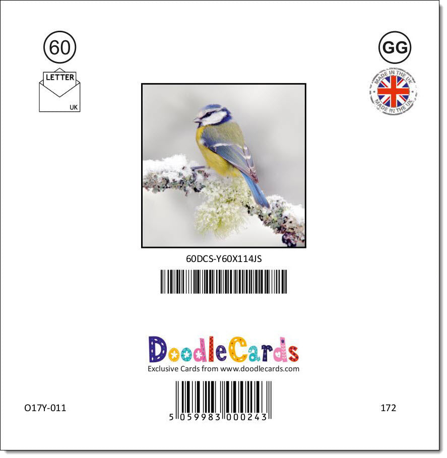 Pack of 10 Square Christmas Cards Blue Tit in the Snow