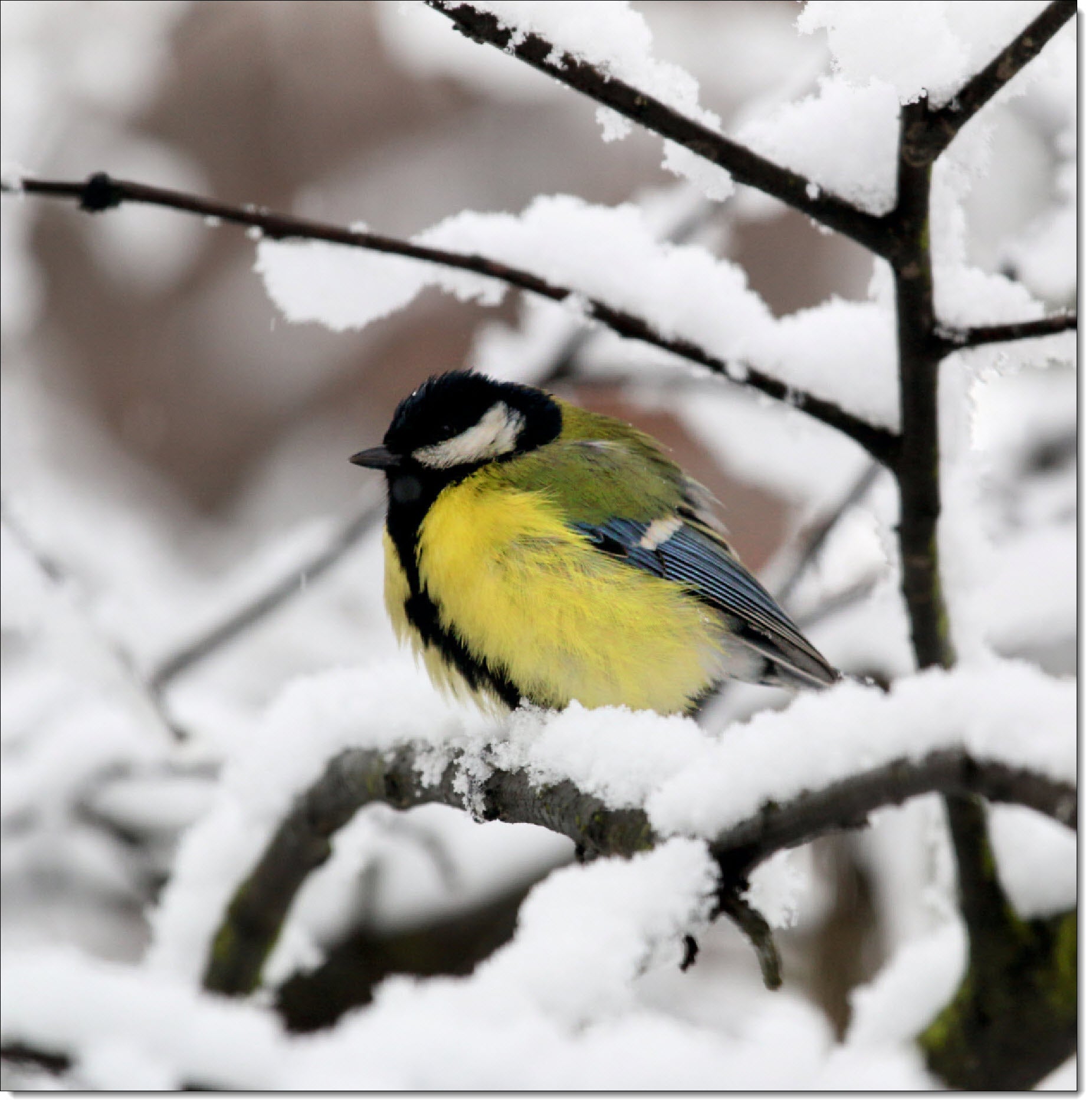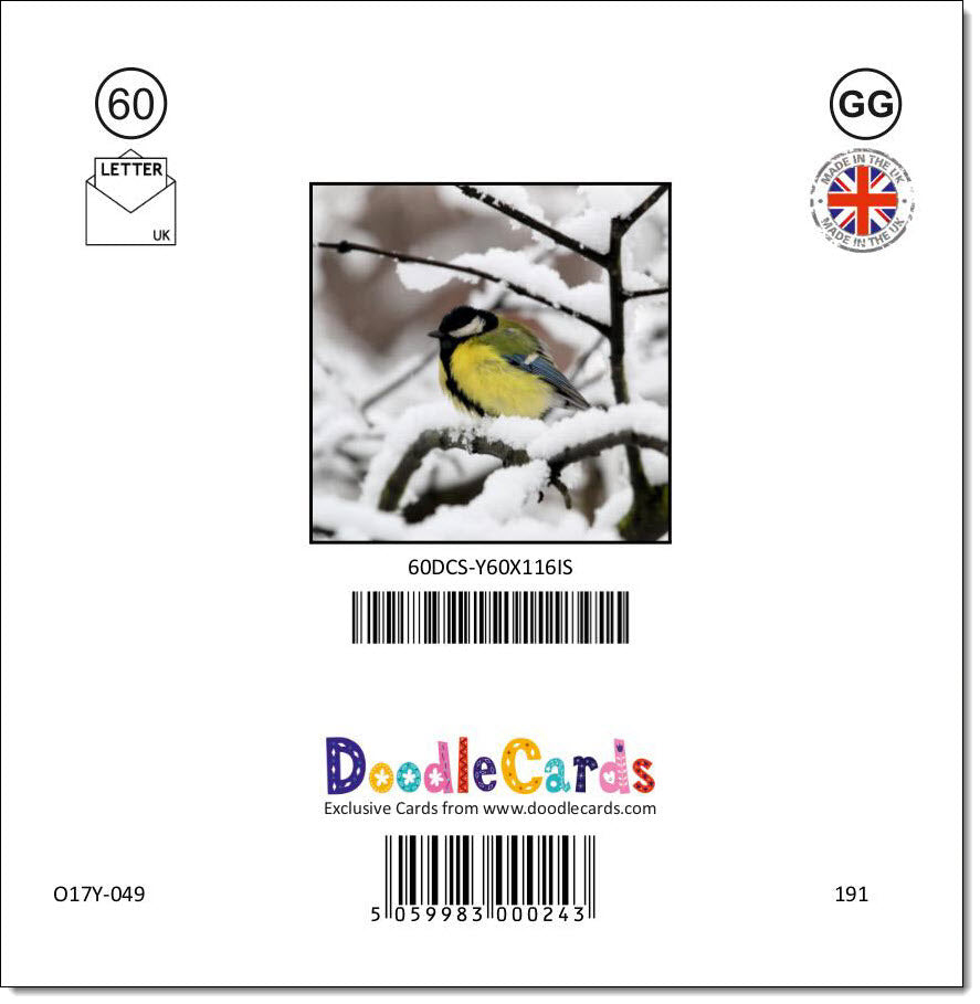 Pack of 10 Square Christmas Cards Great Tit in the Snow