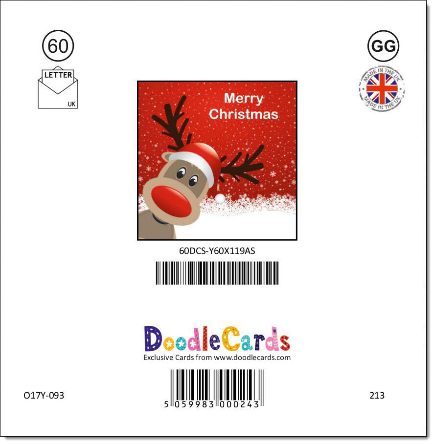 Pack of 10 Square Christmas Cards Rudolph Reindeer