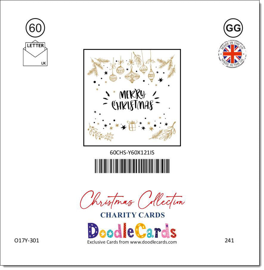 Pack of 10 Square Charity Christmas Cards Black and Gold Merry Christmas