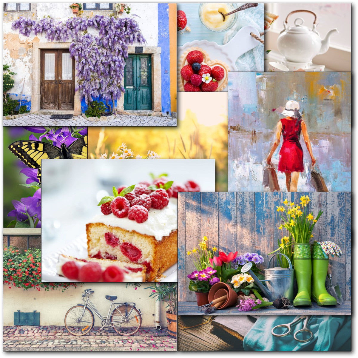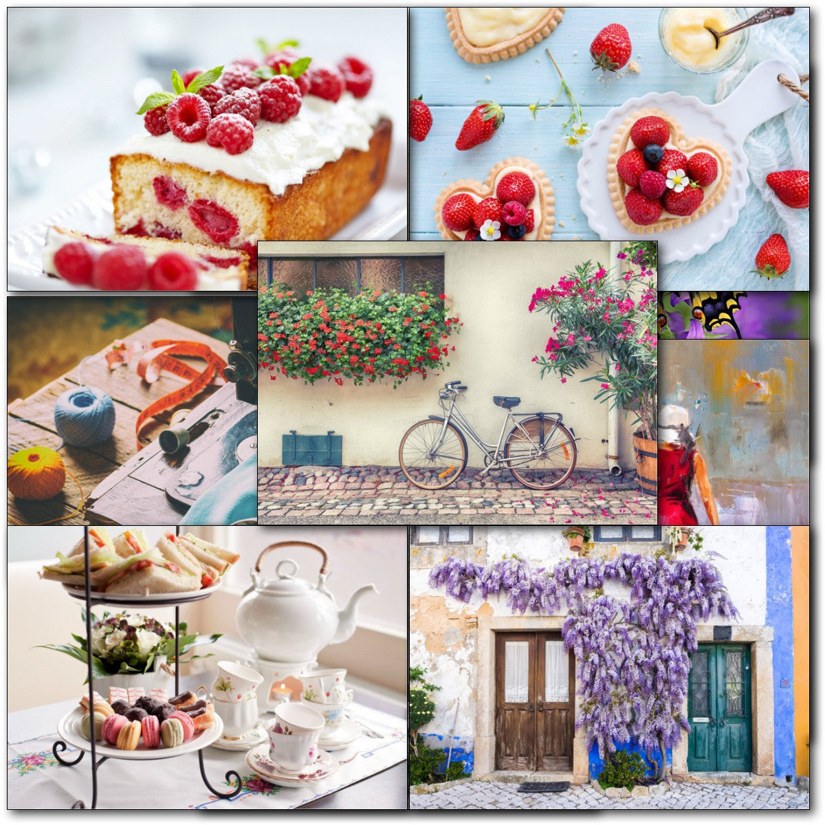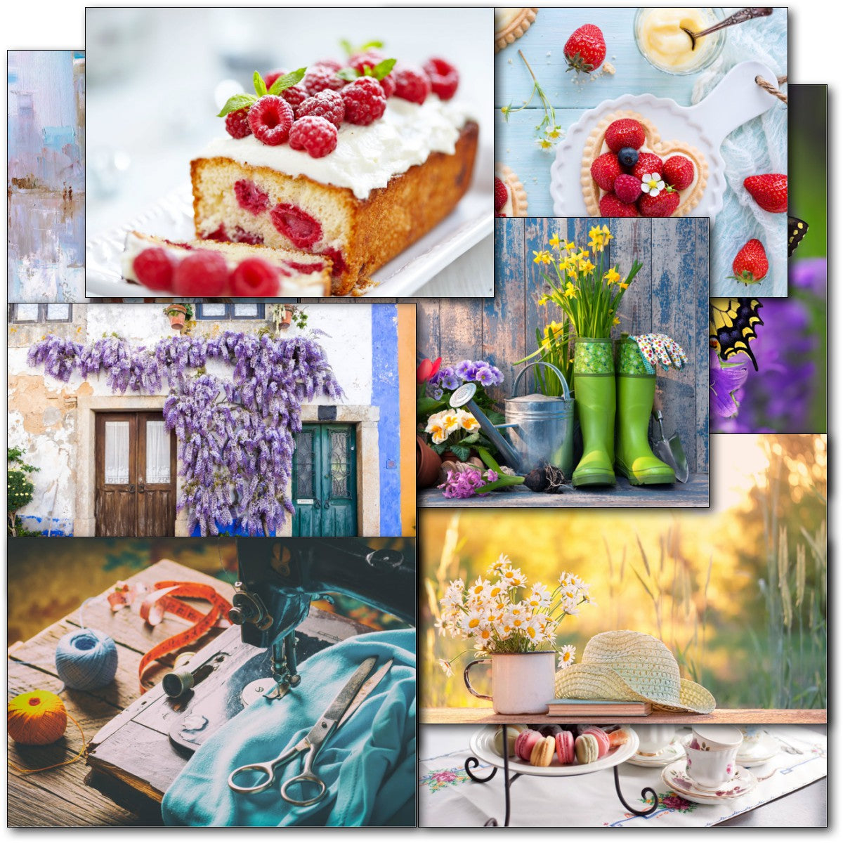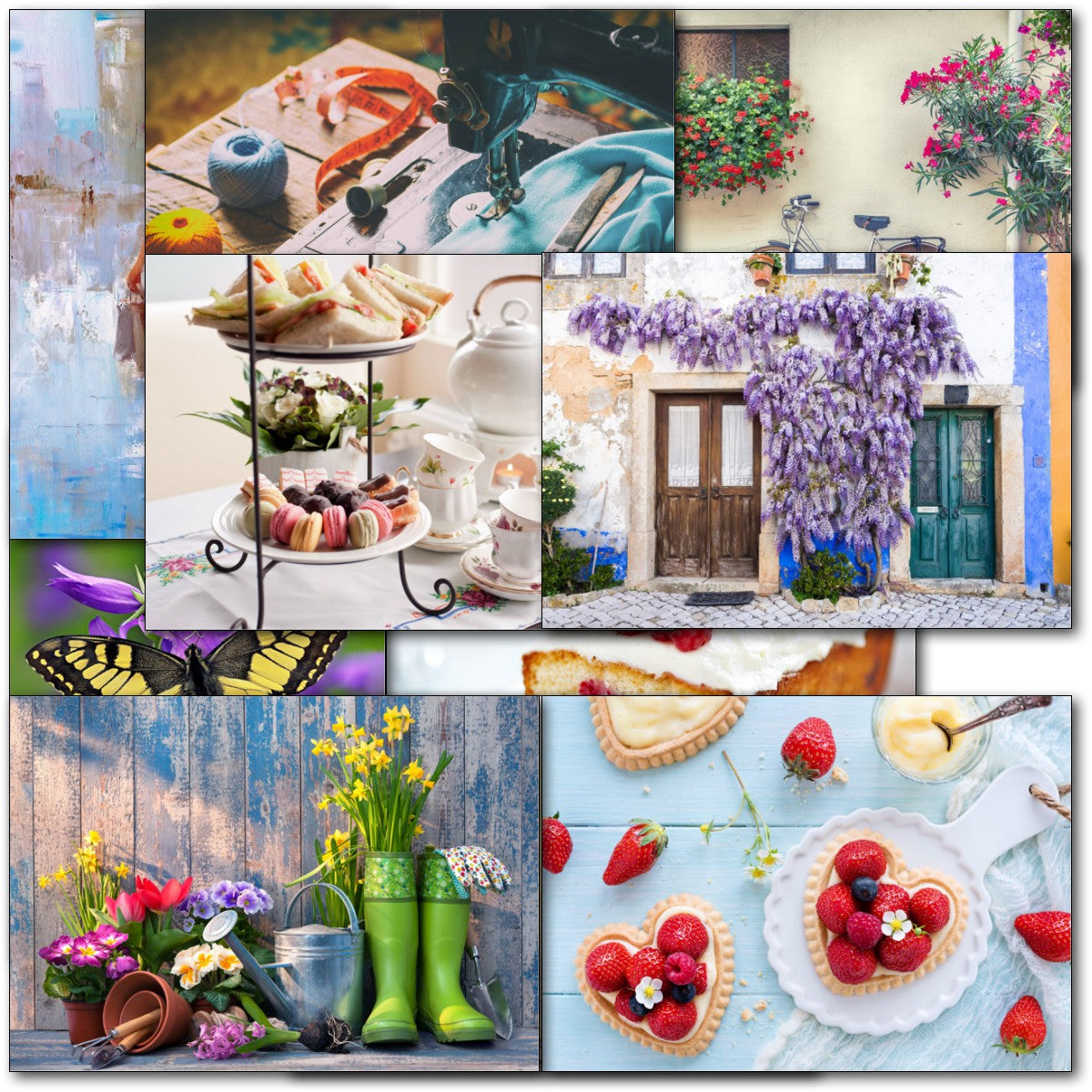 DESIGNS ⭐No more than one card of any design. Therefore pack consists of 10 different cards as shown. Floral Flowers, Butterflies, Cupcakes, Afternoon Tea, Sewing, Bicycle, Bike, Cakes, Girl shopping, Boots Wysteria.⭐
