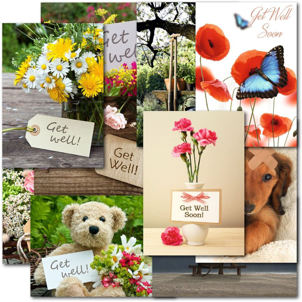 GET WELL MULTIPACK ⭐Pack of 10 high quality Get Well cards - 10 Different Designs ⭐ Professionally printed ⭐ Supplied with white envelopes⭐