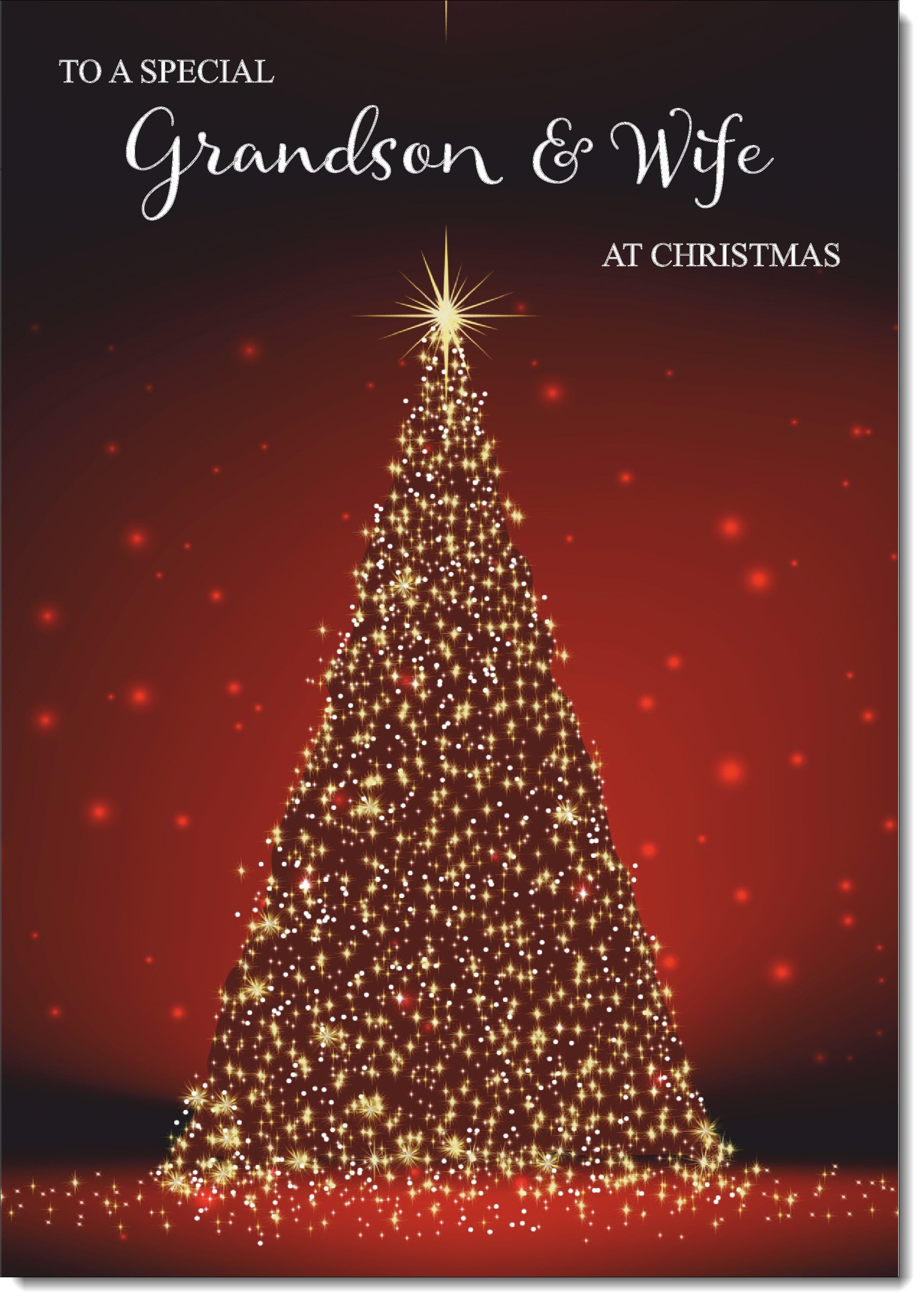 Grandson & Wife Christmas Card Red Christmas Tree