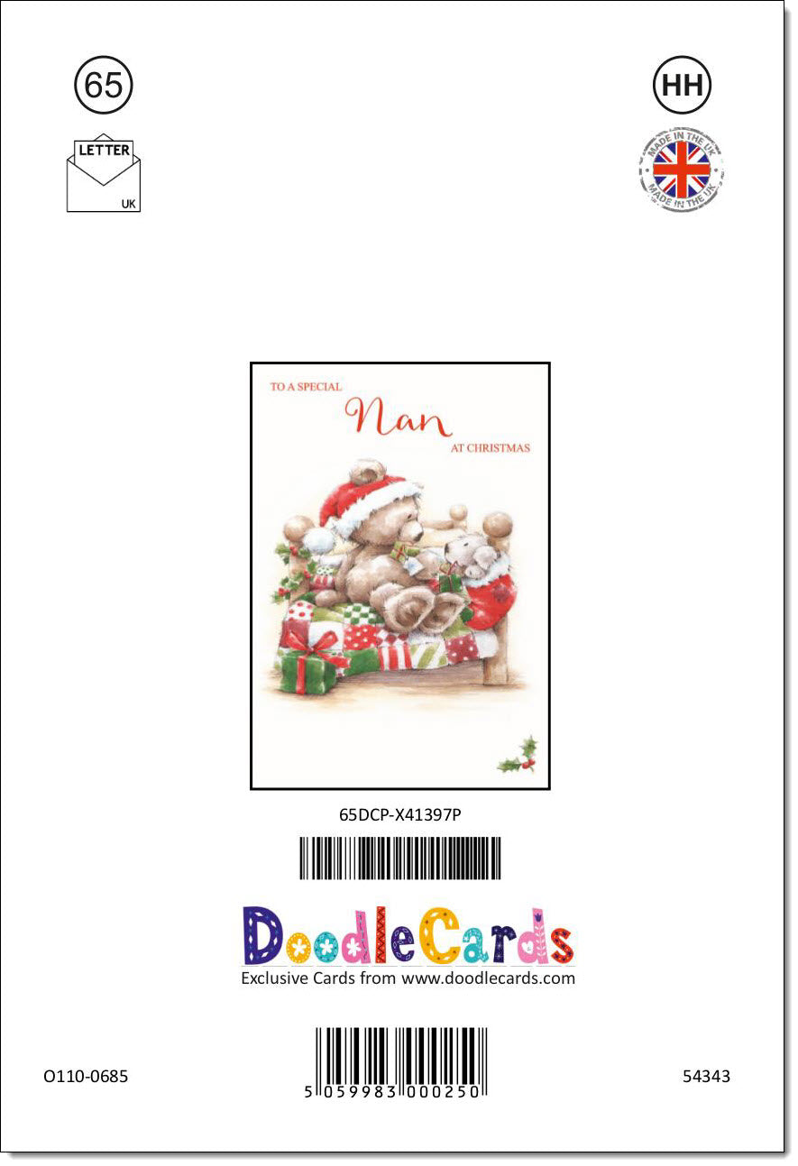 Nan Christmas Card Cute Bear on Bed