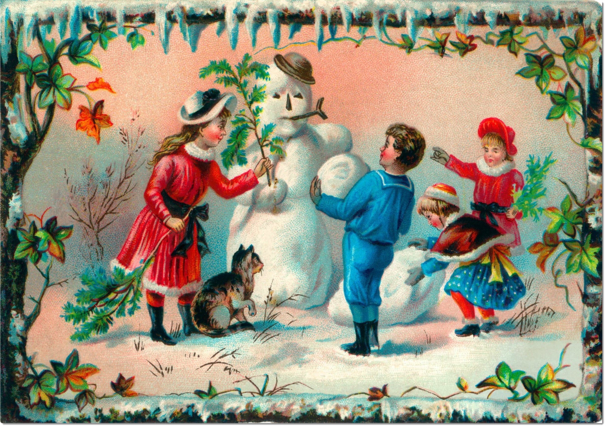 Christmas Card Building a Snowman
