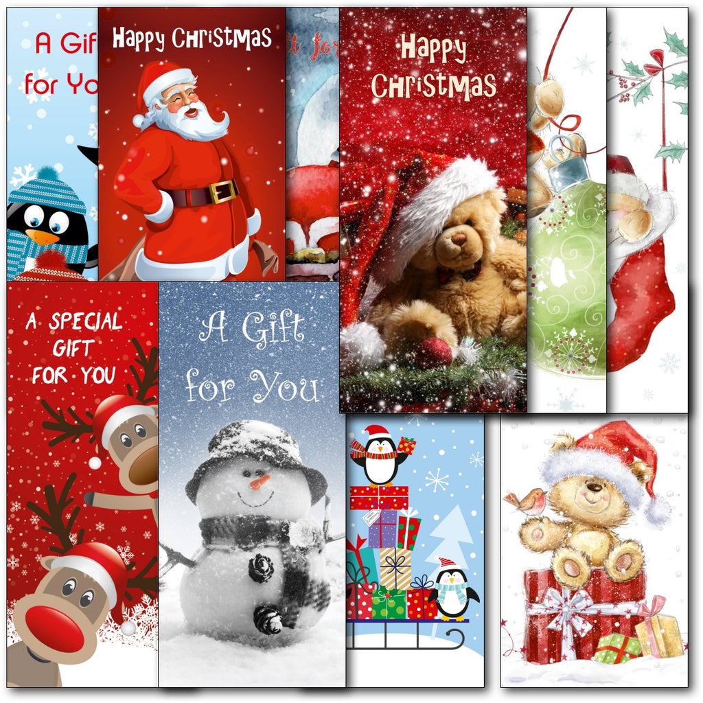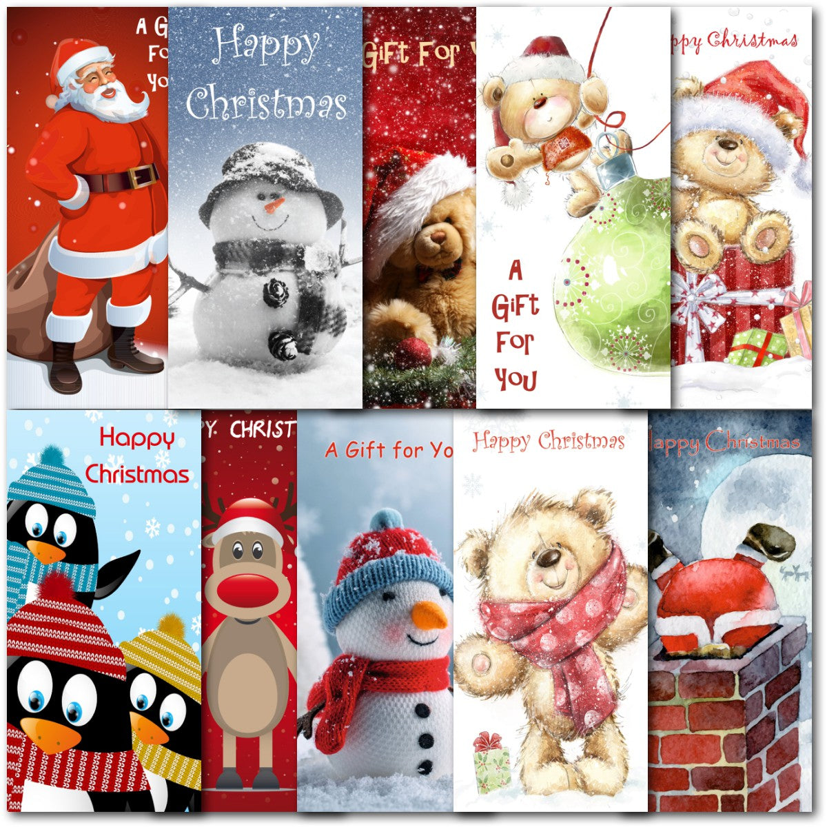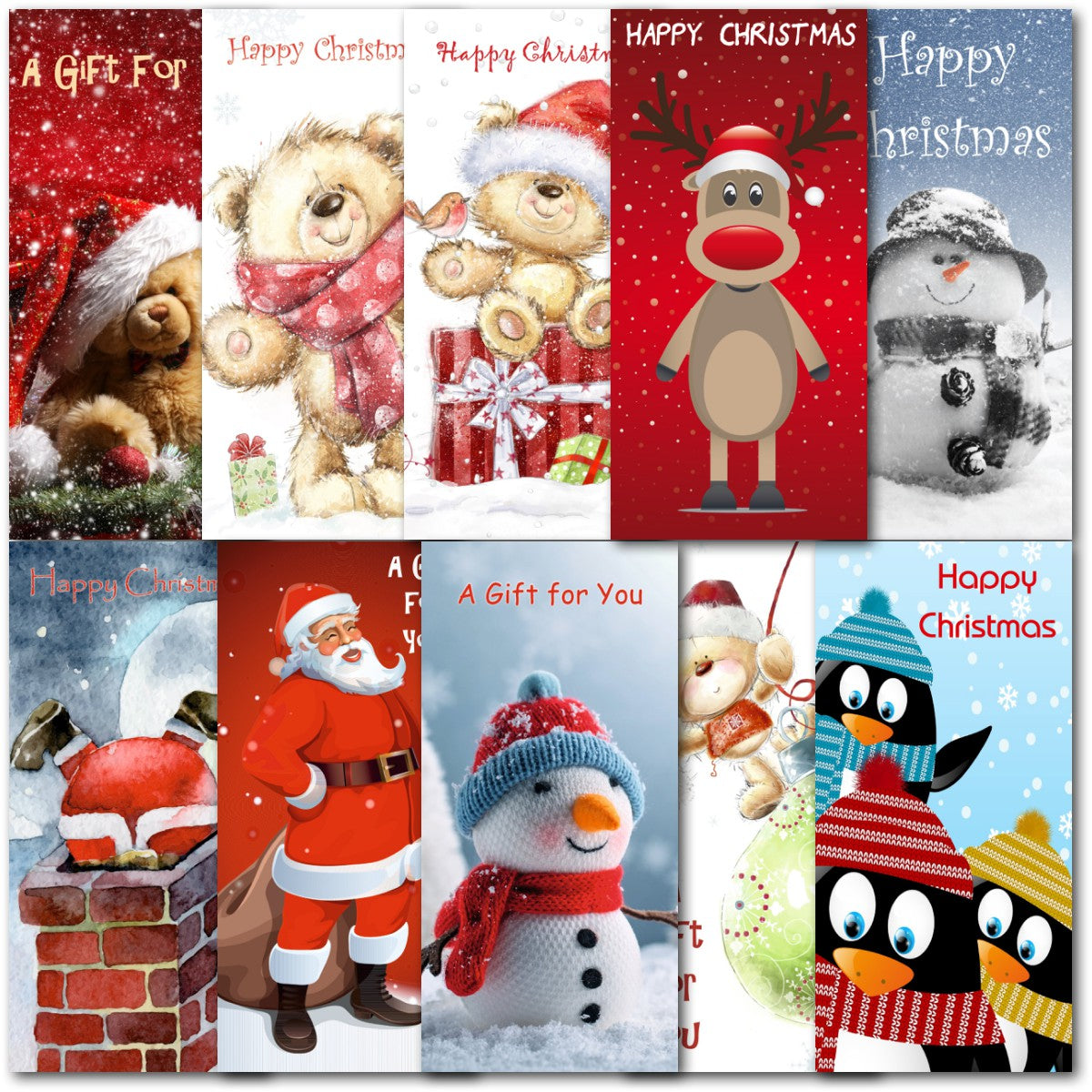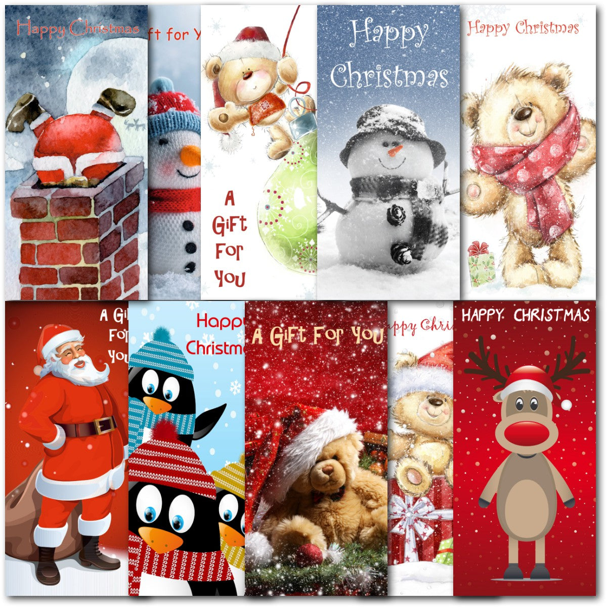DESIGNS ⭐No more than one money wallet of any design. Therefore pack consists of 10 different designs as shown. 3 fold design to hold voucher or notes inside. Teddies, Father Christmas, Santa, Snowman, Penguins, Rudolph, Presents, Children, Kids, Boys, Girls.⭐
