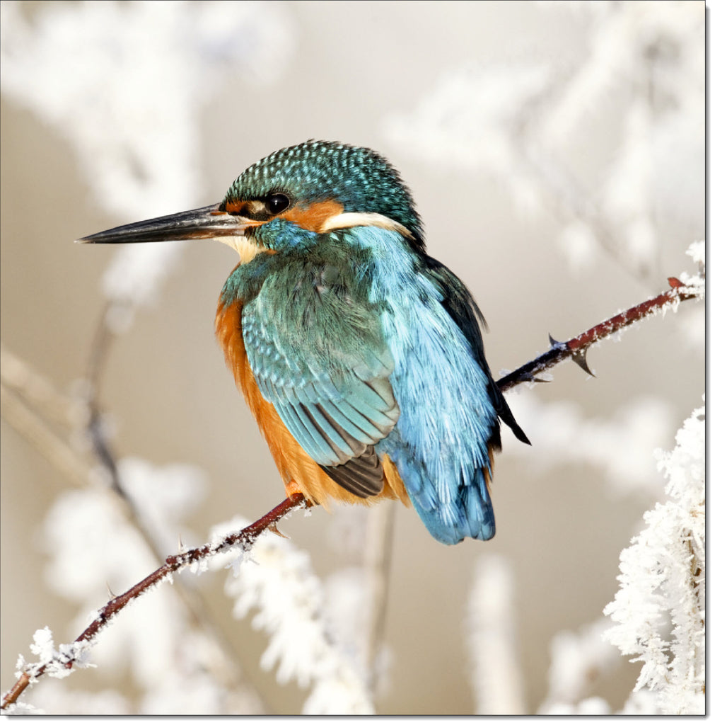 Pack of 10 Square Christmas Cards Kingfisher in the Snow