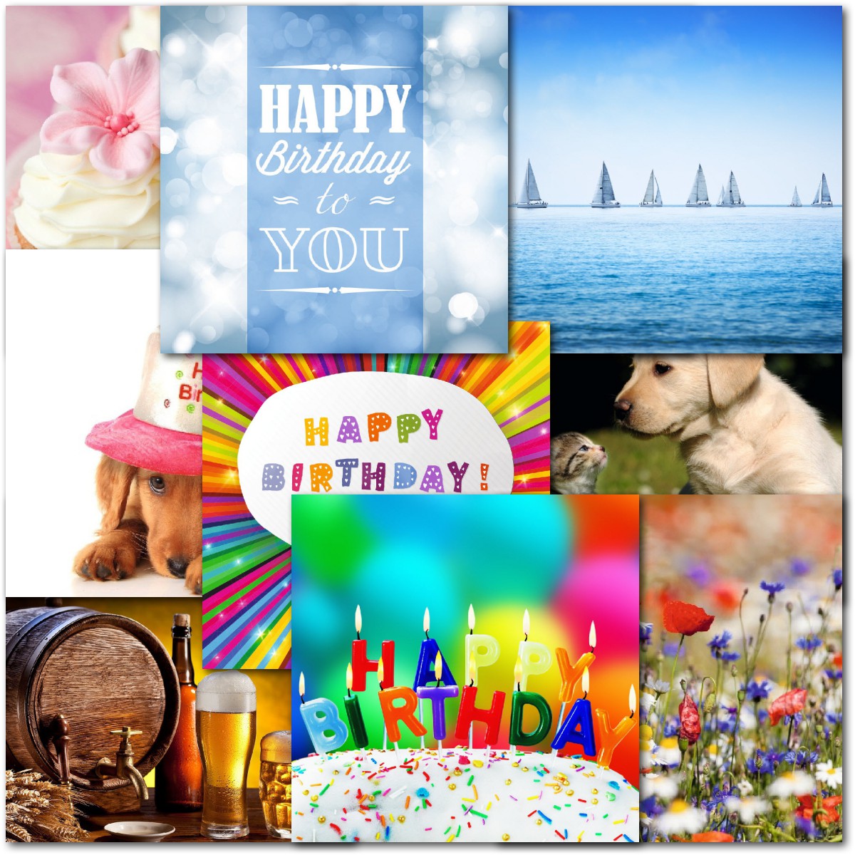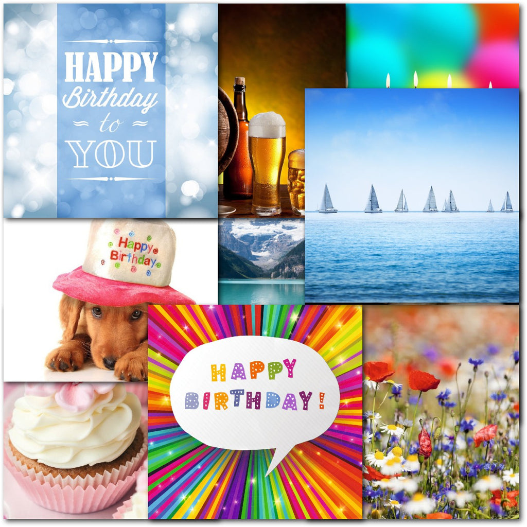 Pack of 10 Square Contempory Family Birthday Cards - Male, Female, Boys & Girls