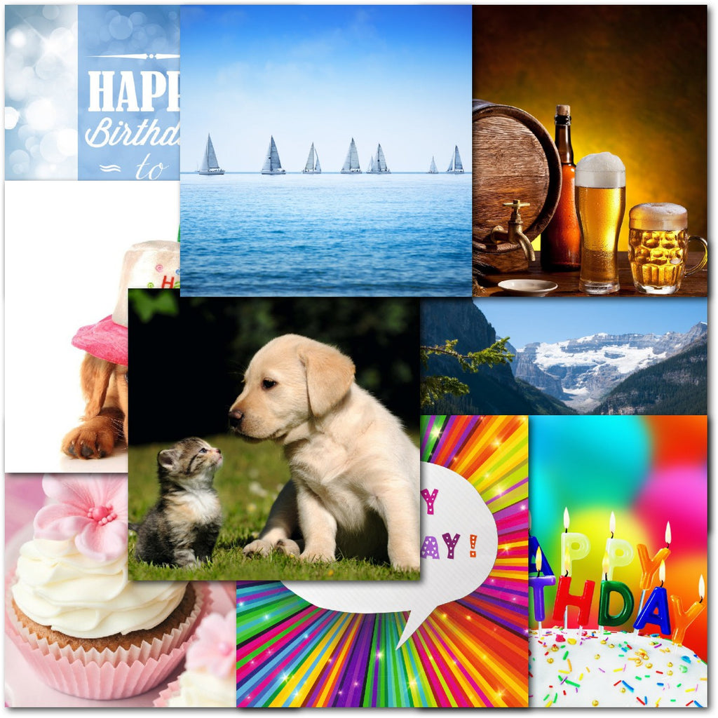 DESIGNS ⭐No more than one card of any design. Therefore pack consists of 10 different cards as shown. Cupcakes Dog, Cat, Beer, Flowers, Sailing Boat cards.⭐