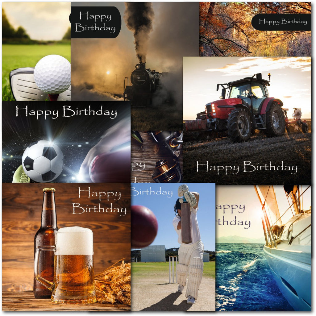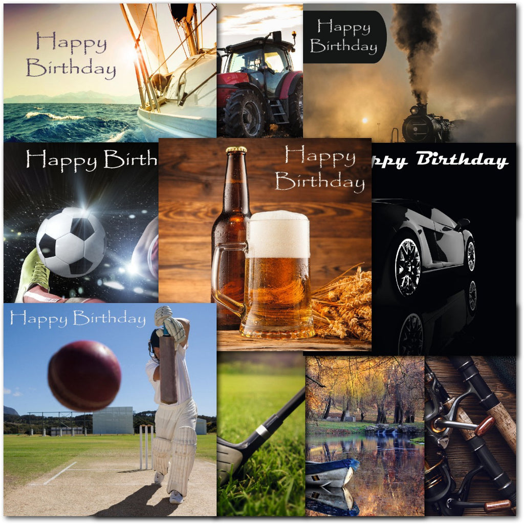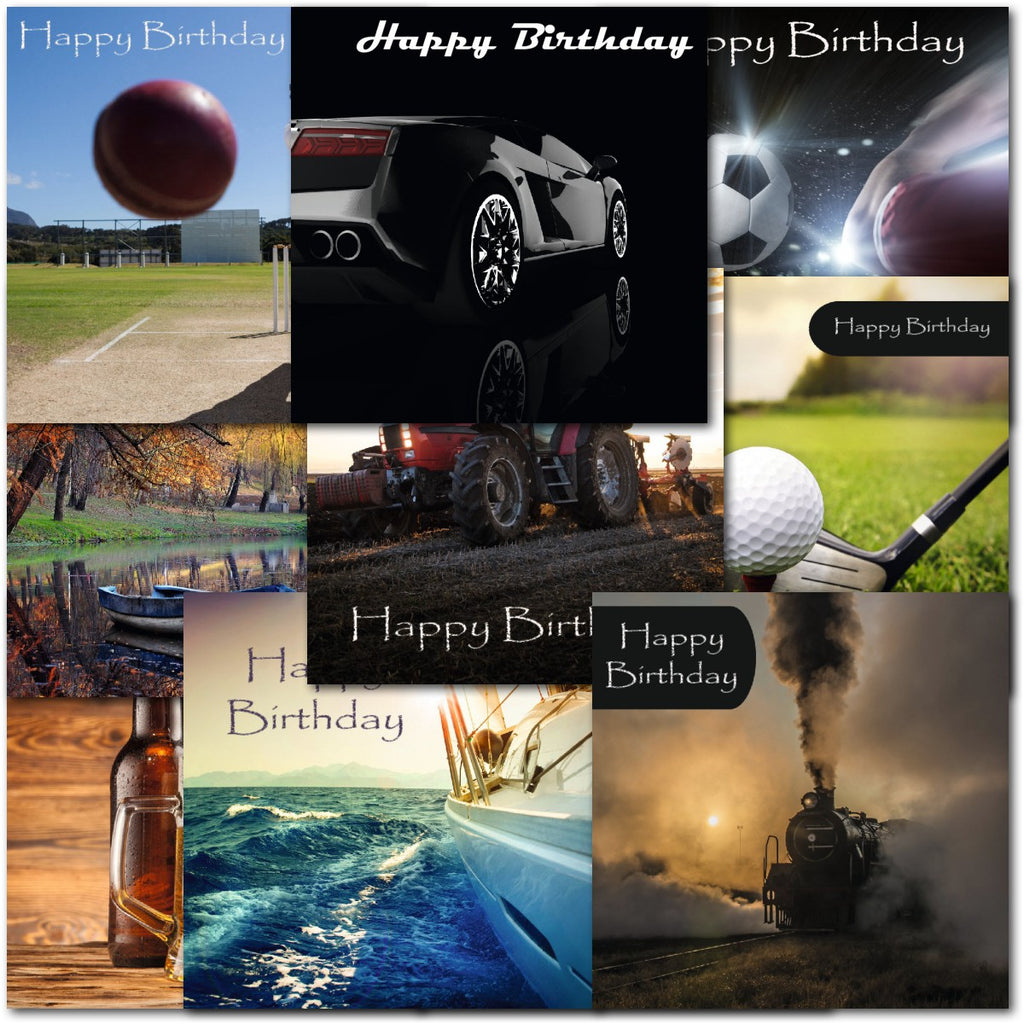 MALE BIRTHDAY MULTIPACK ⭐Pack of 10 high quality male cards - 10 Different Designs ⭐ Professionally printed ⭐ Supplied with white envelopes⭐