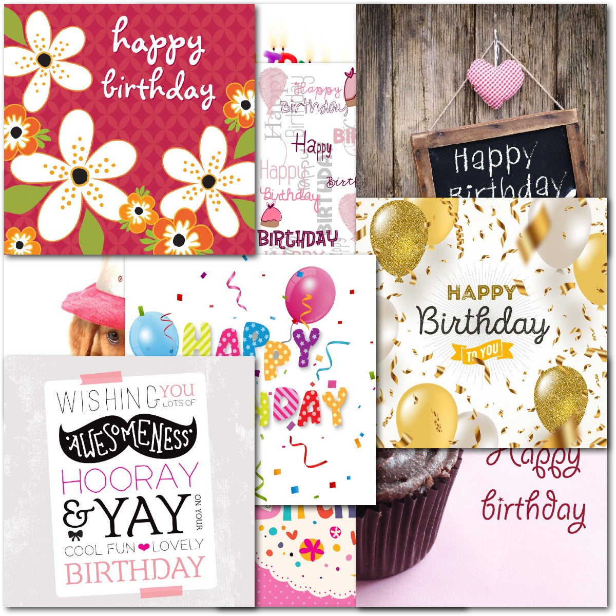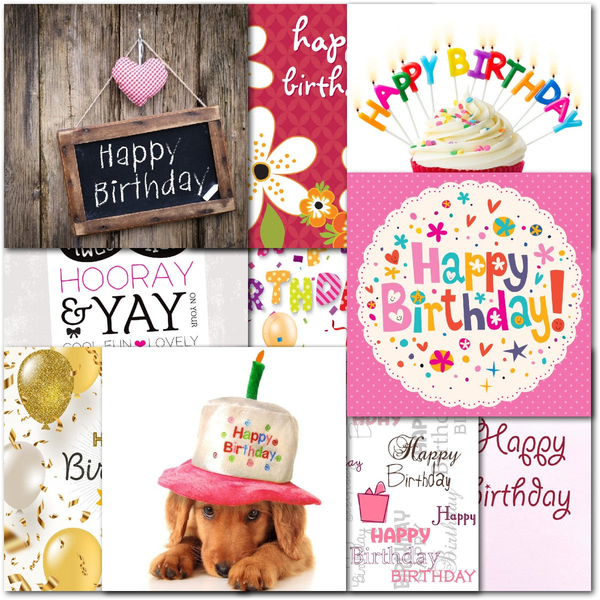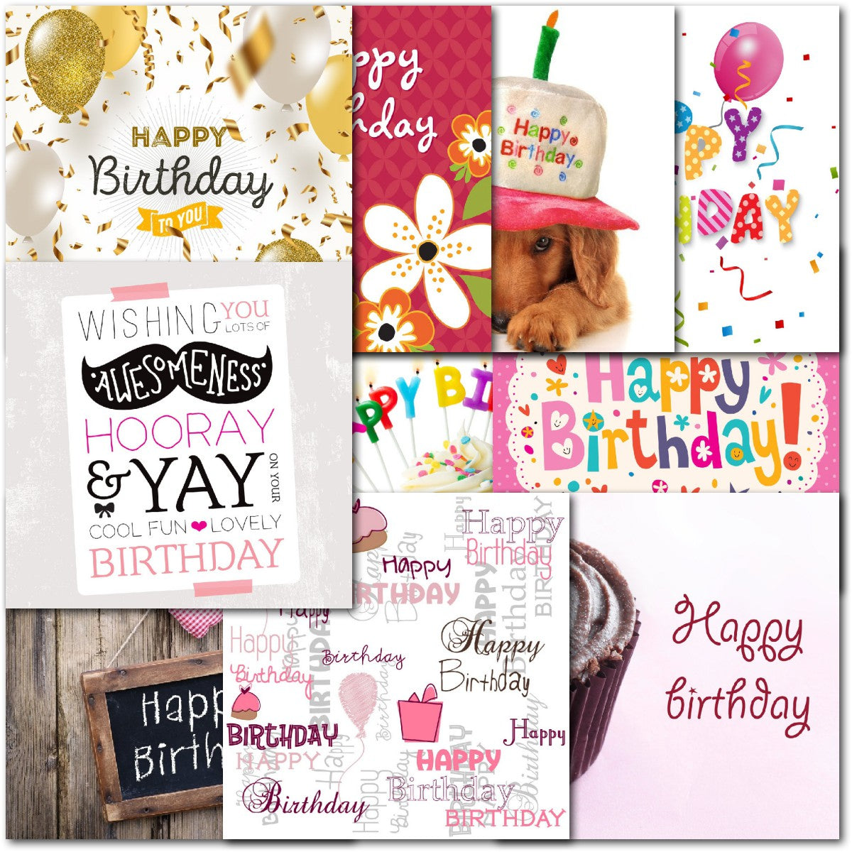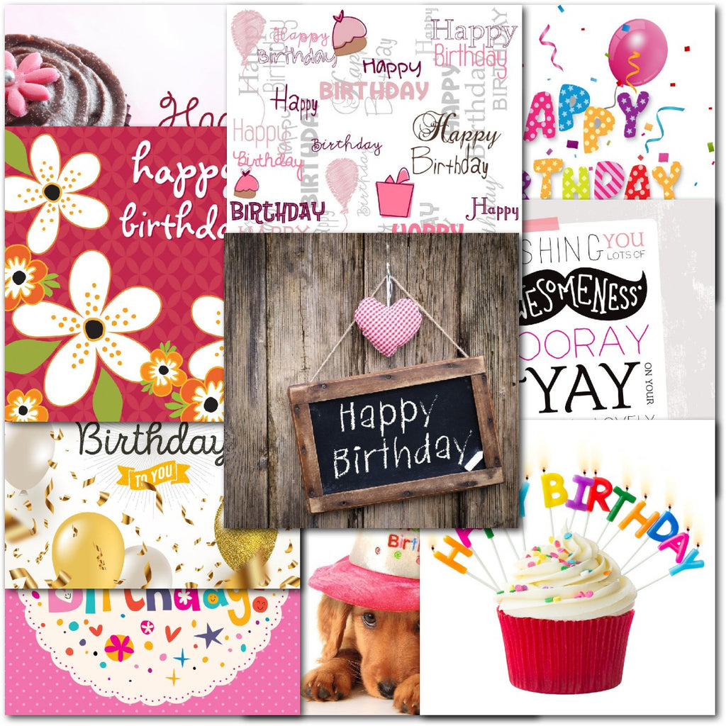 DESIGNS ⭐No more than one card of any design. Therefore pack consists of 10 different cards as shown. Cupcakes, Floral Flowers, Balloons, Dog⭐
