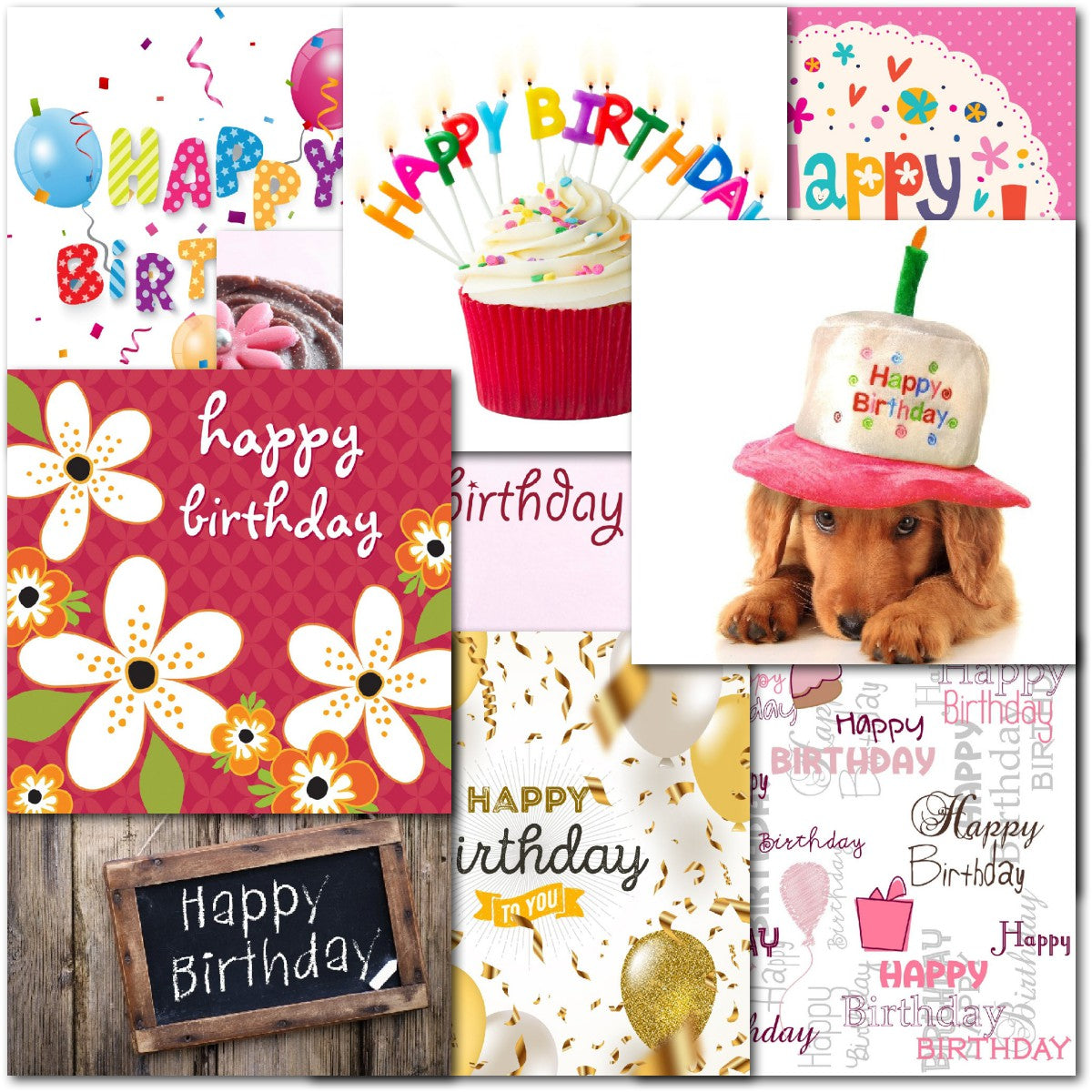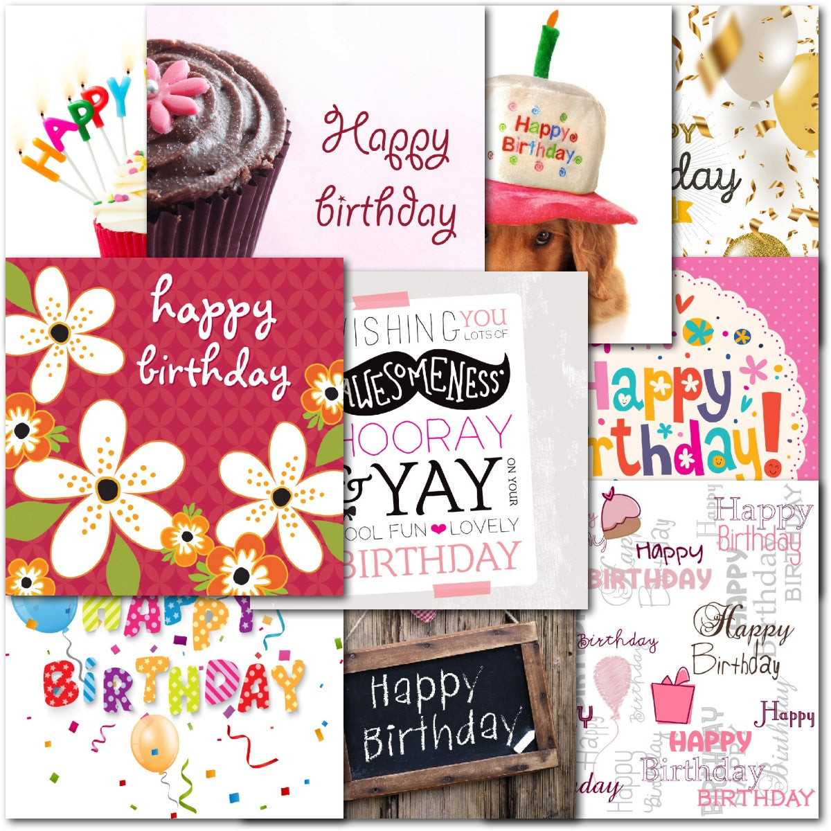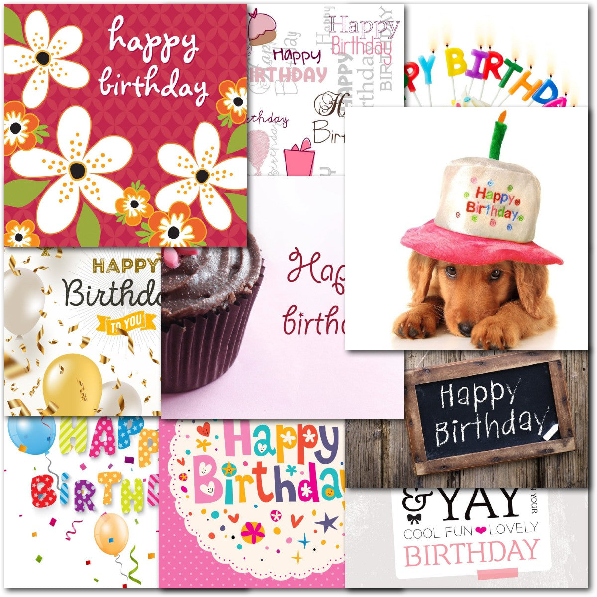 DESIGNS ⭐No more than one card of any design. Therefore pack consists of 10 different cards as shown. Cupcakes, Floral Flowers, Balloons, Dog⭐