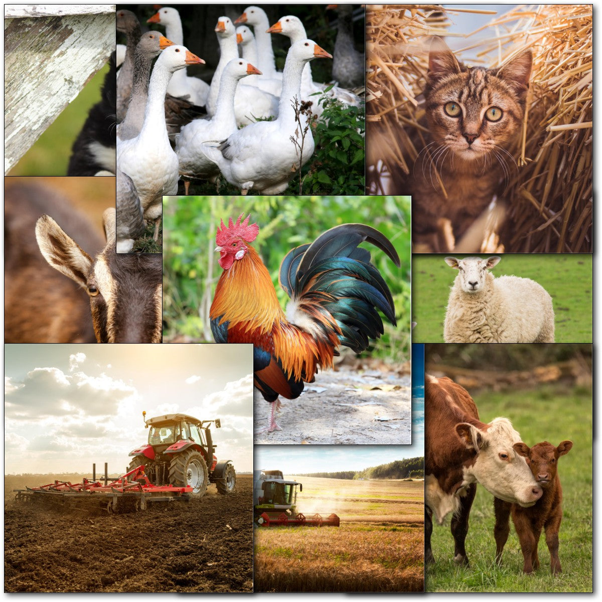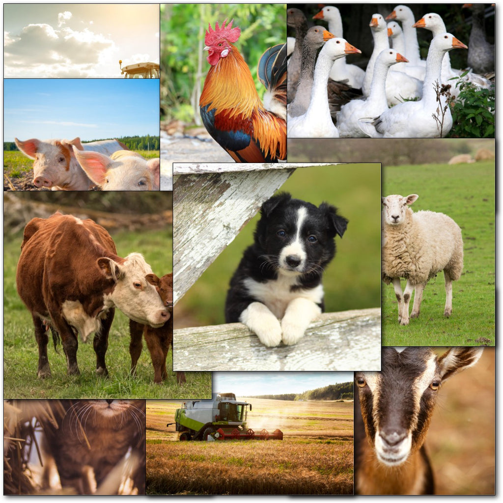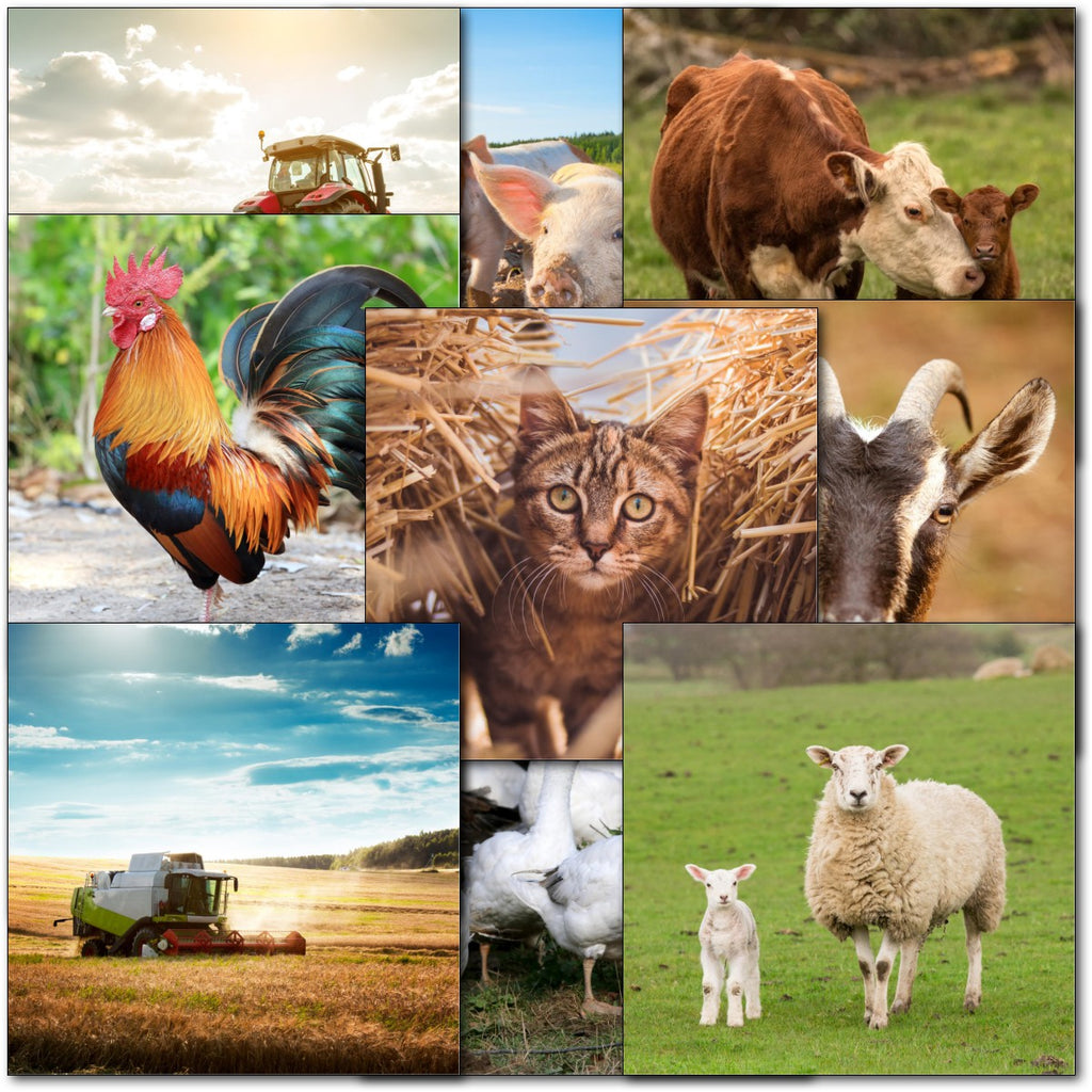 DESIGNS ⭐No more than one card of any design. Therefore pack consists of 10 different cards as shown.- Farm Animals & Machinery. Tractors, Combine Harvester, Dog, Cat, Cows, Sheep, Pigs, Geese⭐