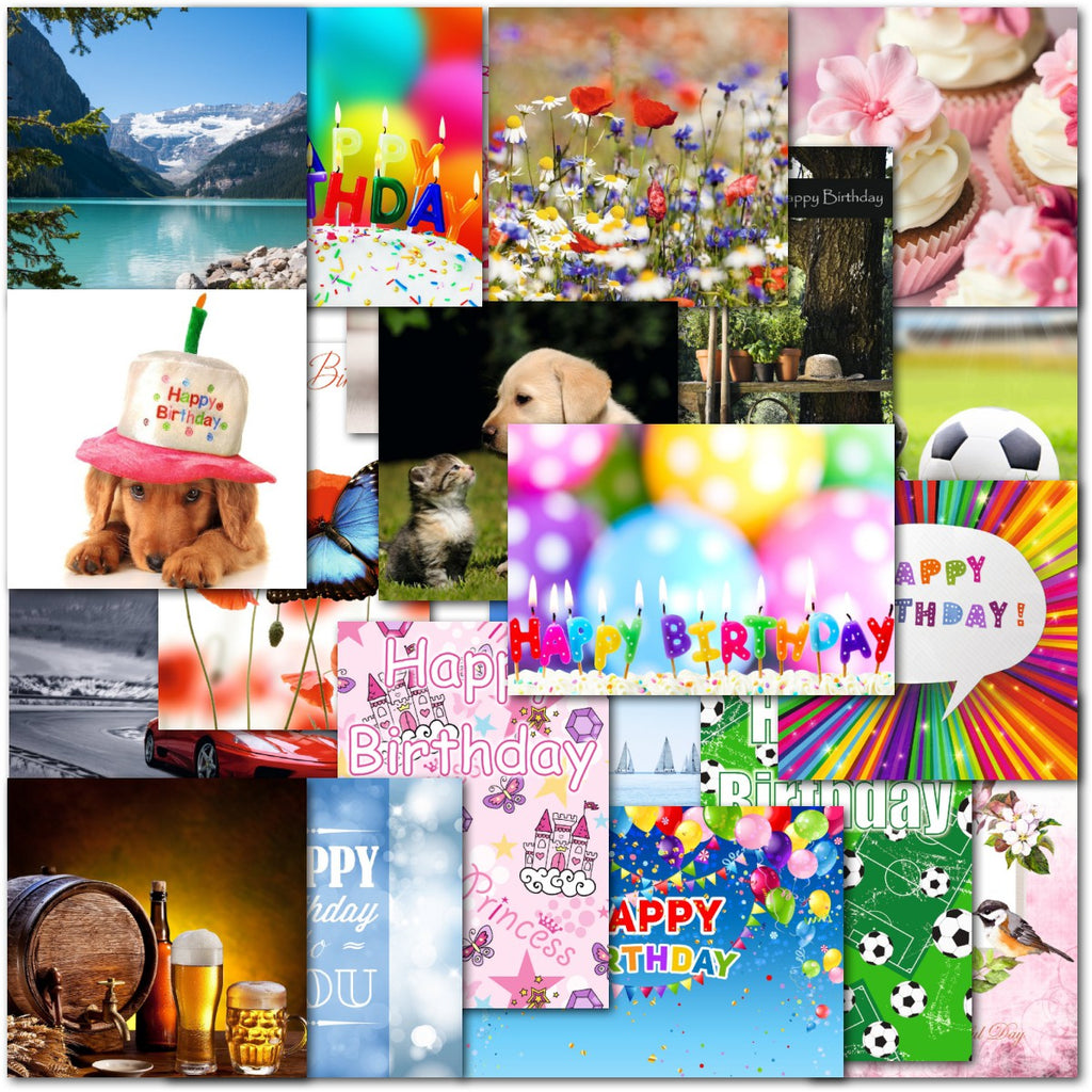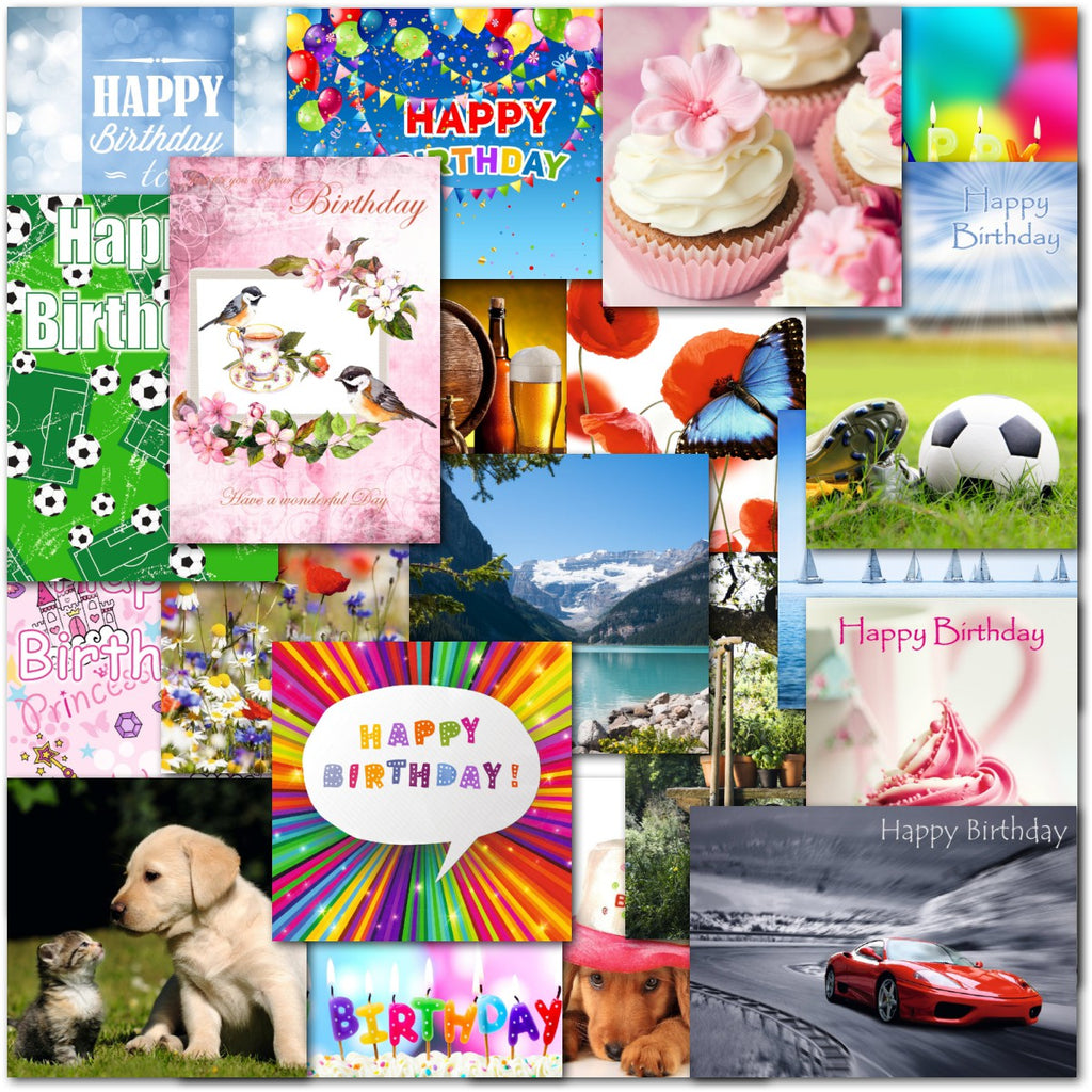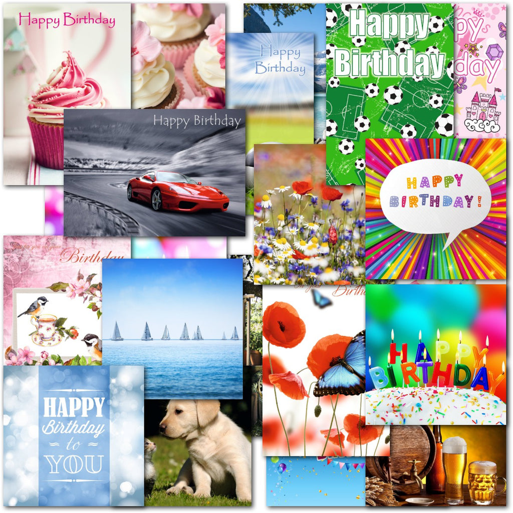 Pack of 20 Family Happy Birthday Cards - Male, Female & Children. Football, Cars, Beer, Gardening, Boats, Cupcakes, Floral Flowers, Dog, Cat